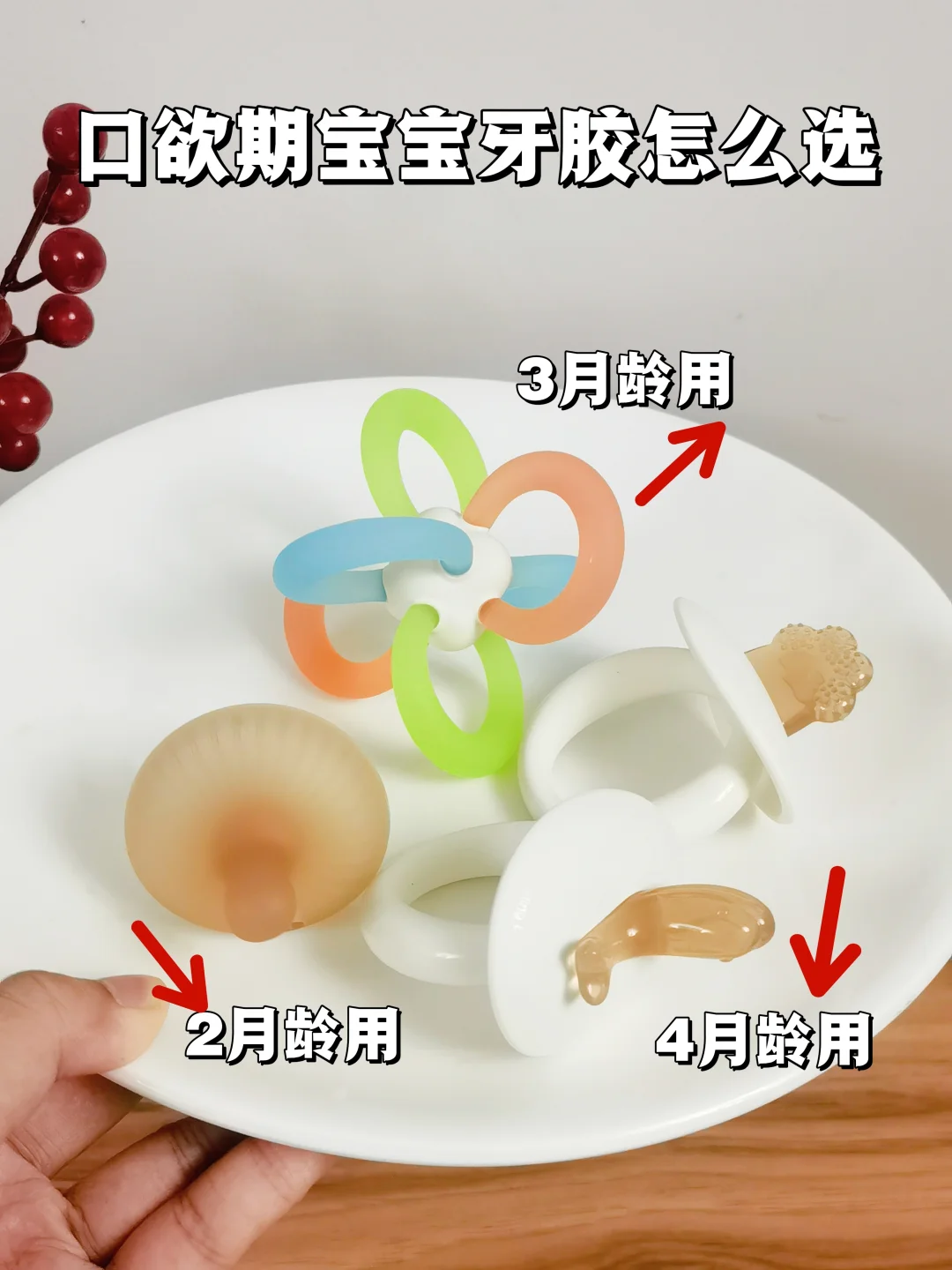 3⃣️月龄:宝宝会频繁啃咬自己的手手,口欲期吸吮需求增强,要选择一款材质安全耐啃咬的牙胶。
