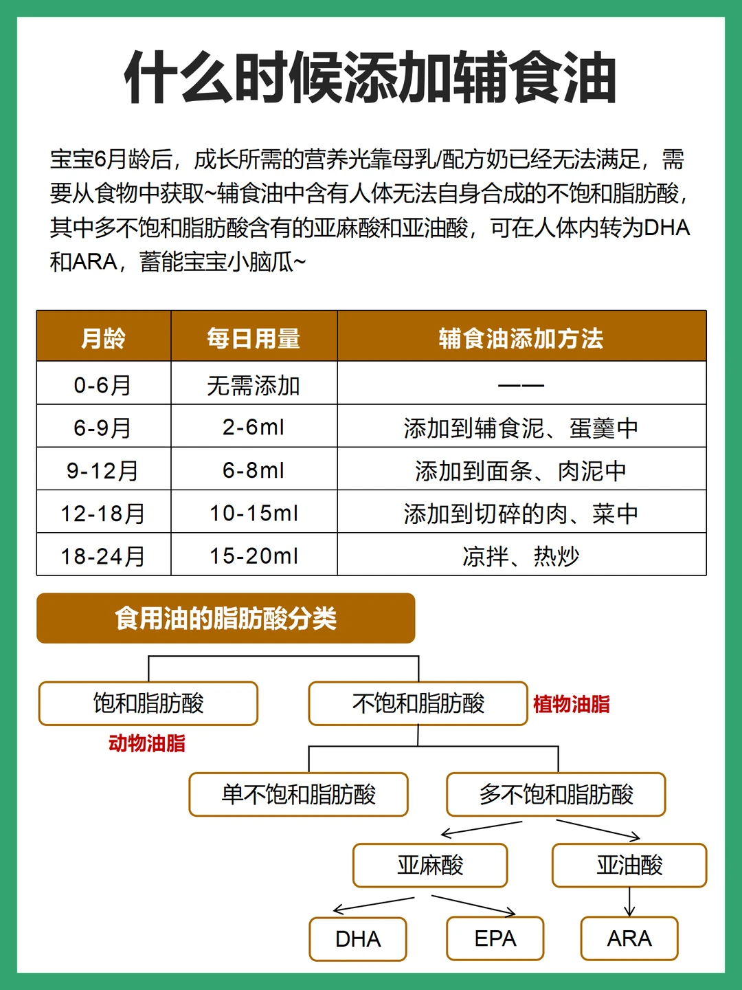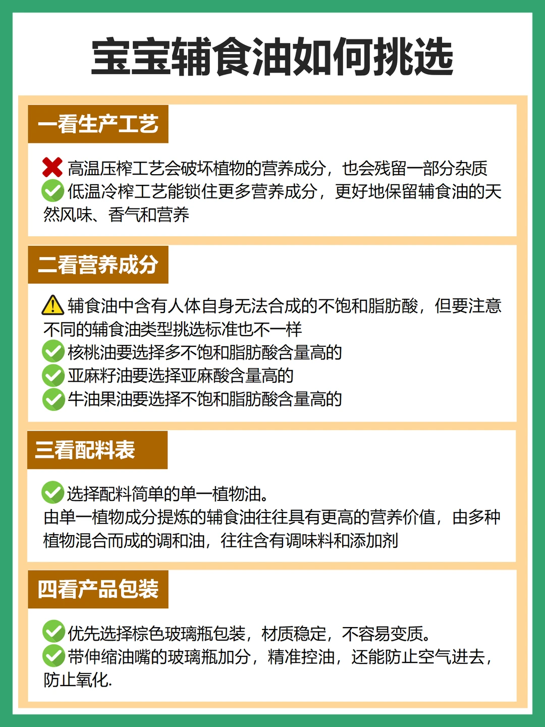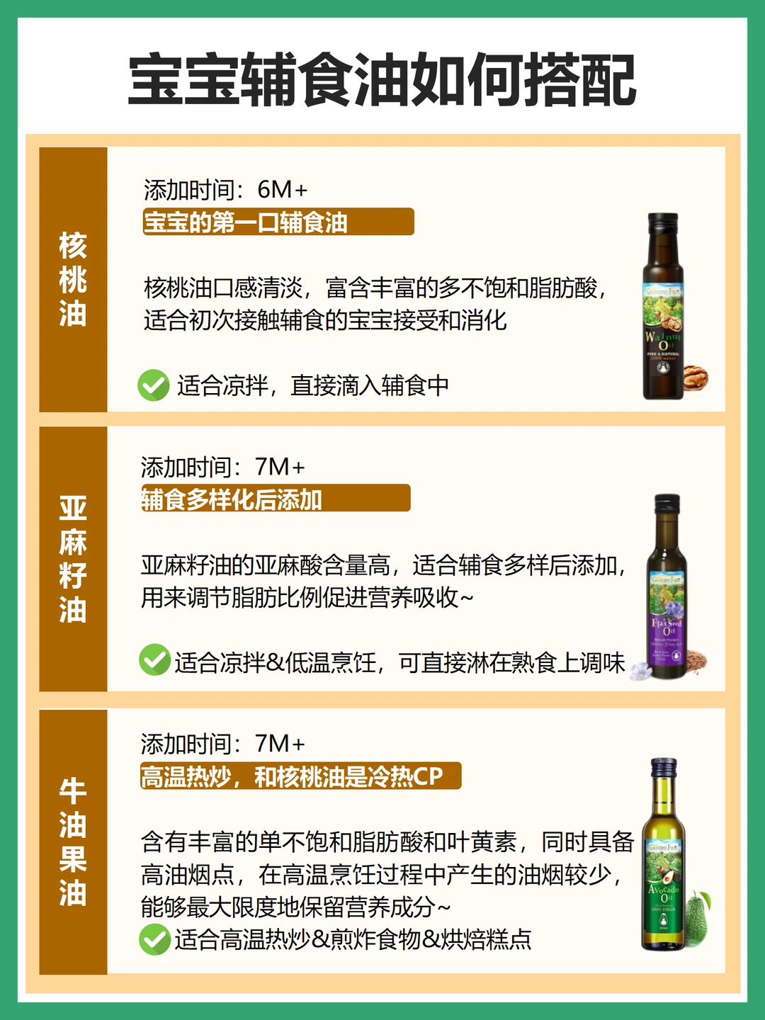 当然除了丰富辅食食材,辅食油🥃也要提上日程哟~怎么给宝宝添加辅食油?新手爸妈重点关注这几方面
