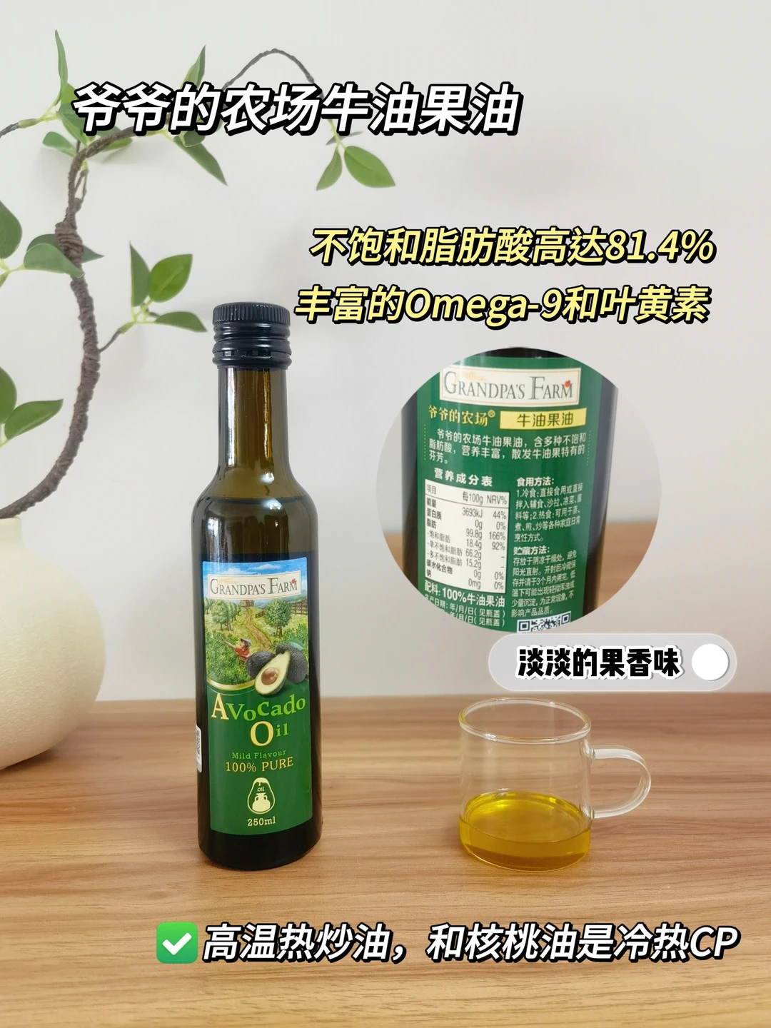 含有丰富的Omega-9和叶黄素,不饱和脂肪酸高达81.4%,油烟点高,炒菜时有股淡淡的果香味,宝宝比较好接受~