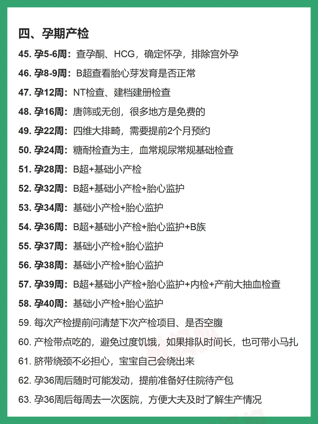 恭喜你,怀孕啦~ 孕期需要注意的事项有哪些?需要做哪些产检?我总结了这90点,先收藏,有空看 1⃣️孕期饮食 2⃣️孕期征兆 3⃣️孕期日常 4⃣️孕期产检 5⃣️住院生产 6⃣️孕期营养 . 持续输出育儿干货 关注我,一起科学育儿