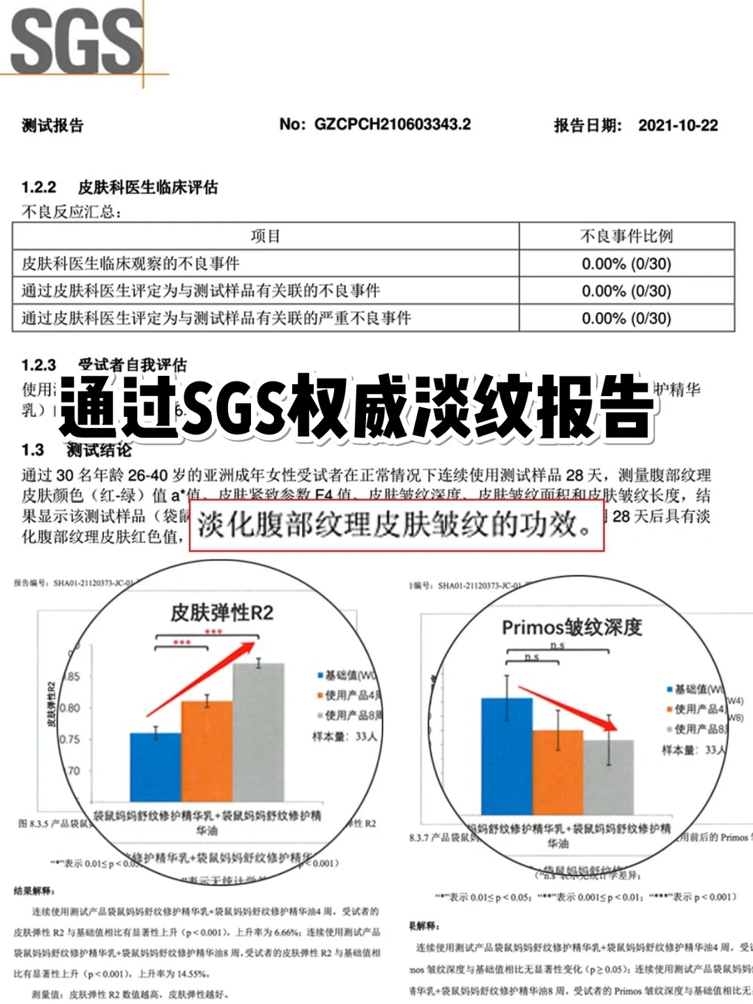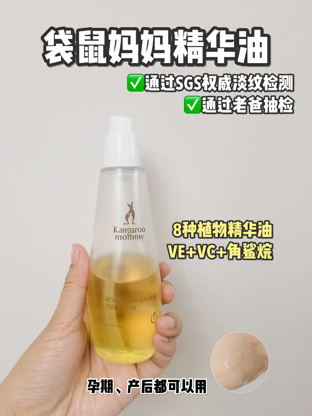 袋鼠妈妈精华油不是普通的保湿油,而是有修护和淡化作用的精华油,这点通过了SGS权威淡纹功效认证✅【老爸抽检】认证✅还是比较有说服力的