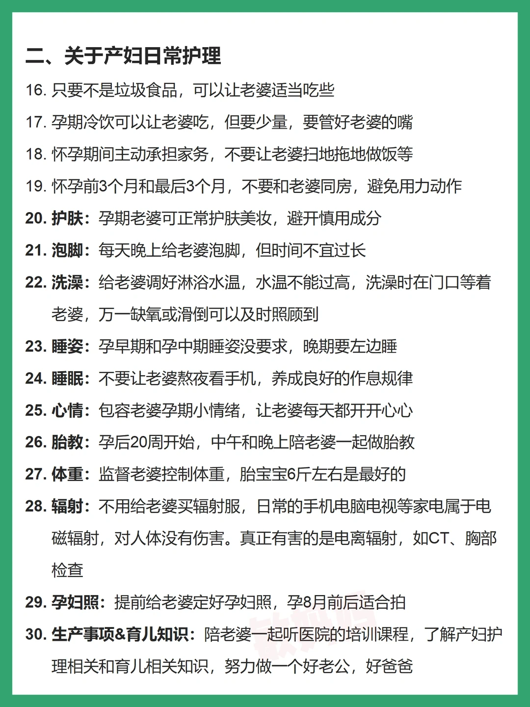 十月怀胎,不仅仅是孕妈妈一个人的事情,写这篇文章,是要告诉准爸爸也要参与进来,要给予老婆更多的照顾。妊娠纹增长、皮肤暗淡、身材变样……孕妈妈面临的孕期压力要比准爸爸大得多,准爸爸平时多安抚老婆情绪,同时帮助老婆克服这些问题