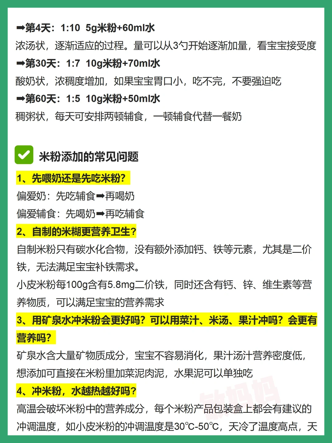 详细的米粉攻略,都写在干货图里了(P1-P4),新手爸妈可以收藏起来慢慢学习~