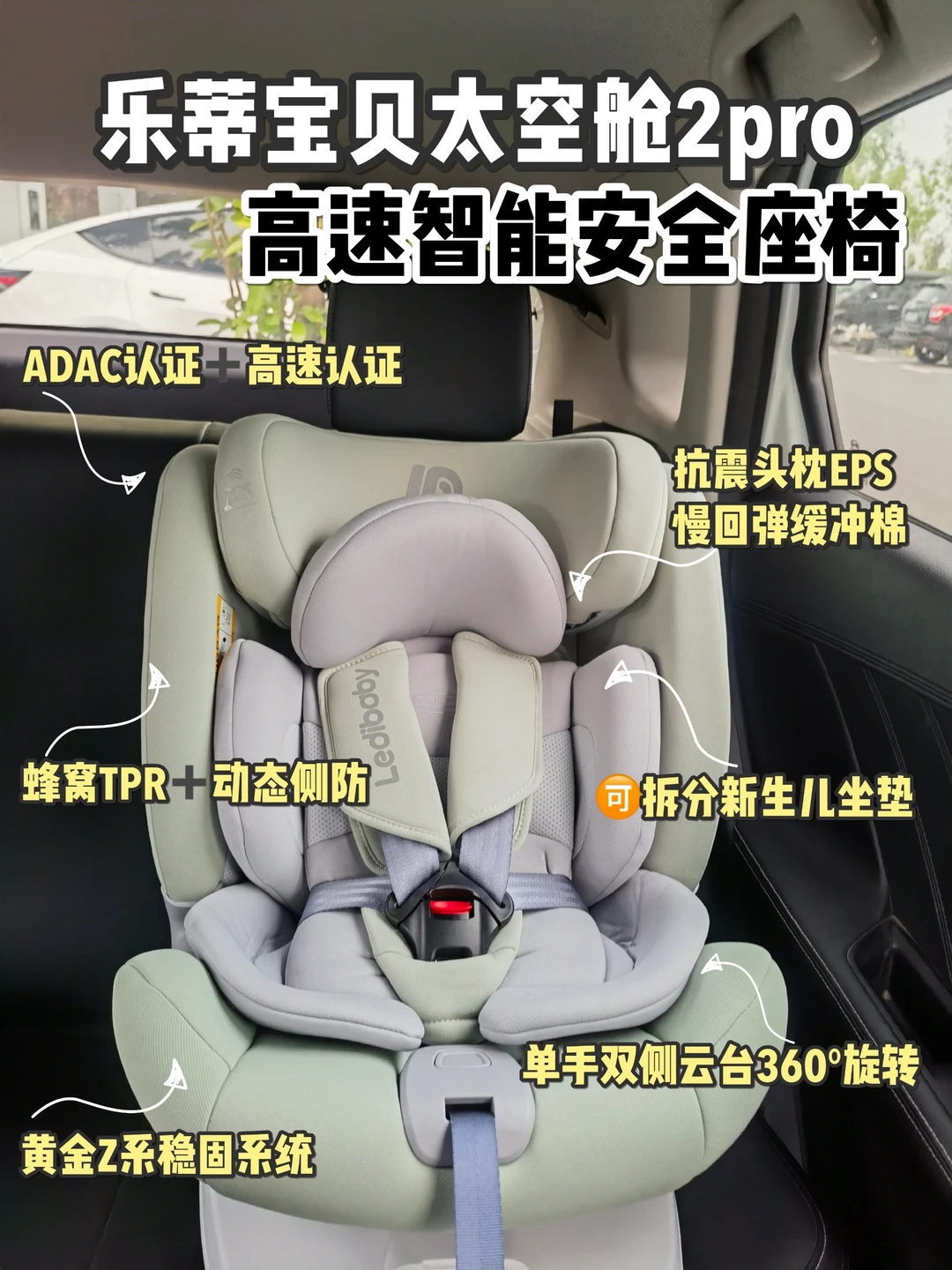 乐蒂宝贝太空舱2pro安全座椅的新生儿坐垫是分区设计,可拆卸的,我家宝宝坐的时候我会分区拆卸垫子,让宝宝坐着更舒服一点👶🏻头枕也可以根据自家宝宝的身高来调整高度~同时它还有通风散热功能,天气热的时候,一键打开通风➡️再也不用担心宝宝乘坐后背闷热出汗啦~‼️兼顾高安全性的同时还能给宝宝极致的乘坐体验~