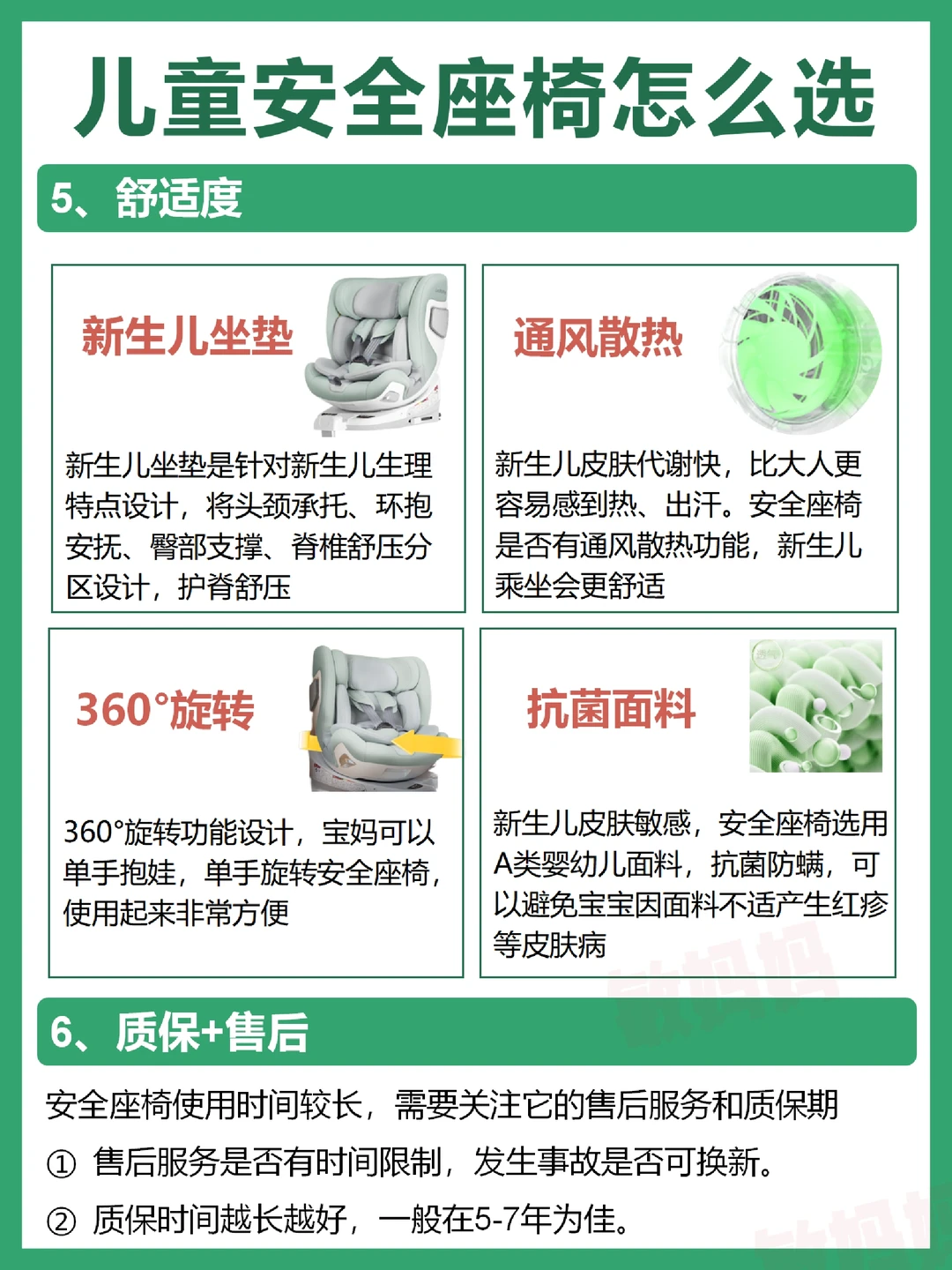 ①新生儿坐垫②通风散热性