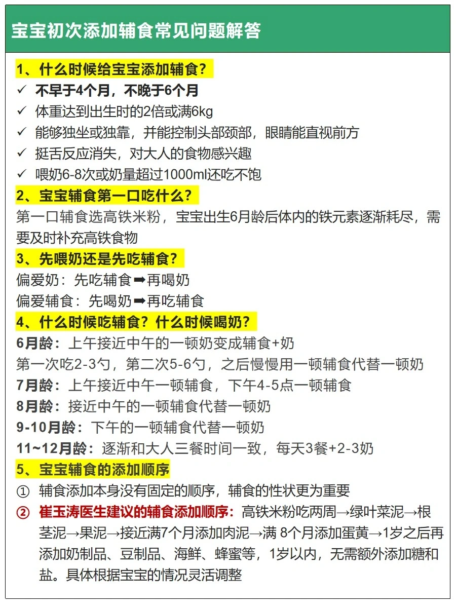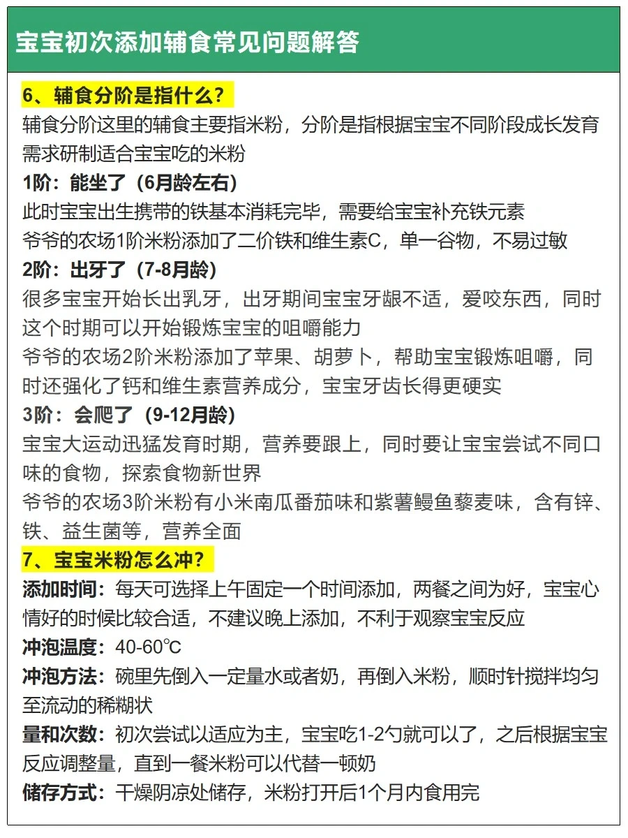 宝宝第1口辅食什么时候添加?高铁米粉怎么选?米粉如何冲泡?辅食添加有固定顺序吗?本篇整理了宝宝辅食添加指南、误区、辅食添加表等内容,供新手爸妈学习了解