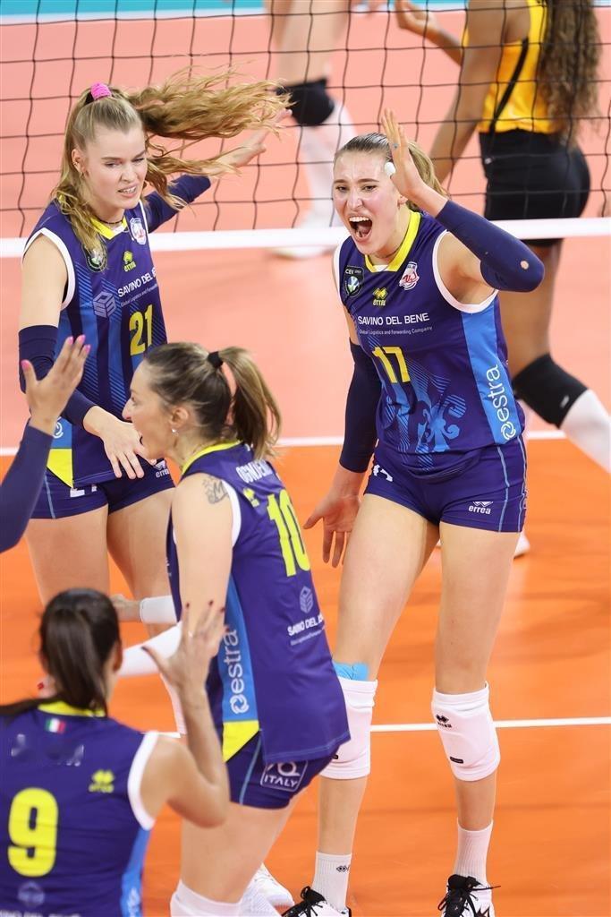 三连胜!瓦基弗银行3-1力克斯坎迪奇 安特罗波娃空砍30分难救主 2025-2026赛季女排欧冠A组第三轮,土耳其瓦基弗银行以3-1击败意大利斯坎迪奇,豪取小组赛三连胜,四局比分26-24、25-22、17-25、25-21。 瓦基弗银行多点开花,博斯科维奇贡献24分,马尔科娃斩获21分,卡绍特与泽赫拉分别拿下11分和10分;斯坎迪奇则全靠安特罗波娃独撑,她轰下全场最高30分,富兰克林入账11分。 技术统计上,瓦基弗银行扣球62-44碾压对手,弥补了拦网11-14、发球5-9的劣势;两队一传到位率相差无几,但瓦基弗银行自失送分25-15多于对手,仍凭借凌厉扣杀锁定胜局。