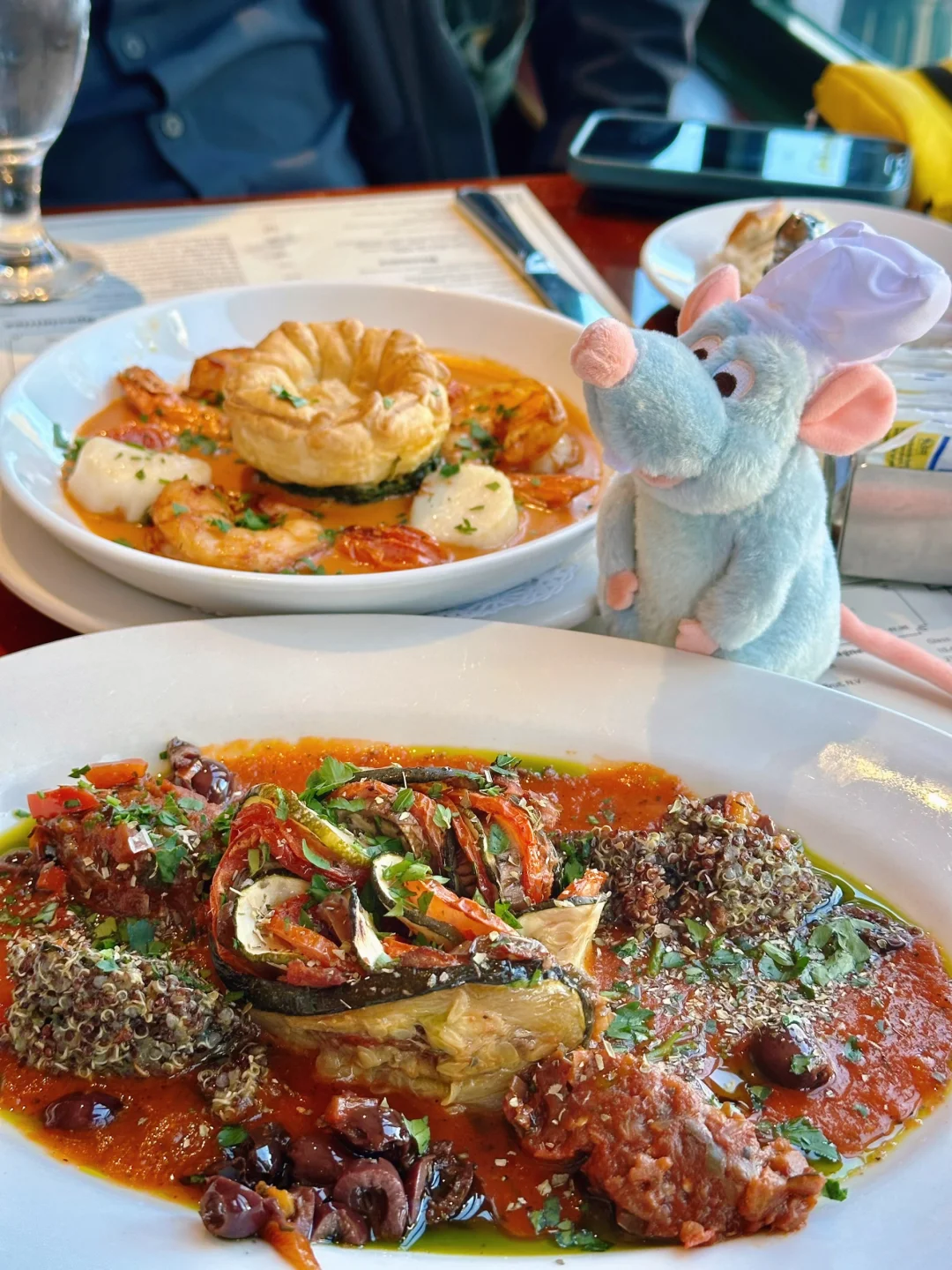 因为特别爱做菜,家里又养了只小仓鼠,《料理鼠王》的Remi是当仁不让我和男友最喜欢的迪士尼IP。今年感恩节去奥兰多,当然要去Epcot法国馆坐料理鼠王的ride,还特意约了主题餐厅Chef de France午餐。