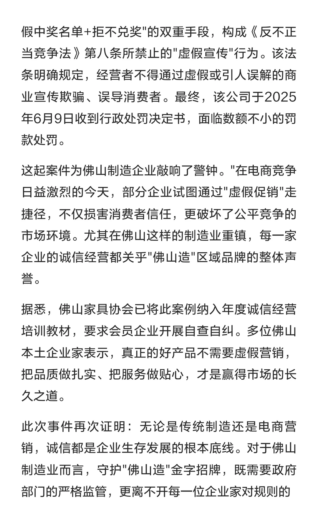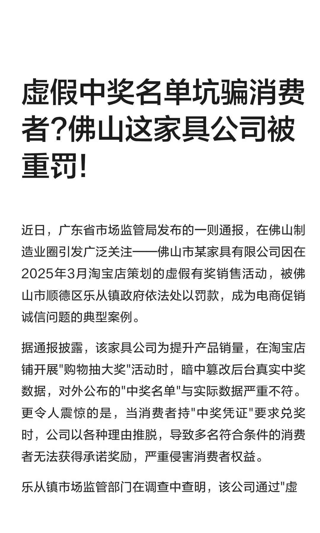 虚假中奖坑骗消费者?佛山家具公司被重罚