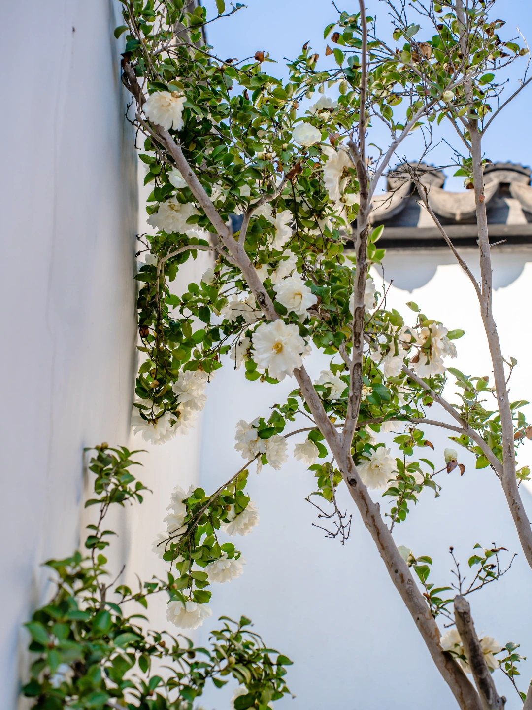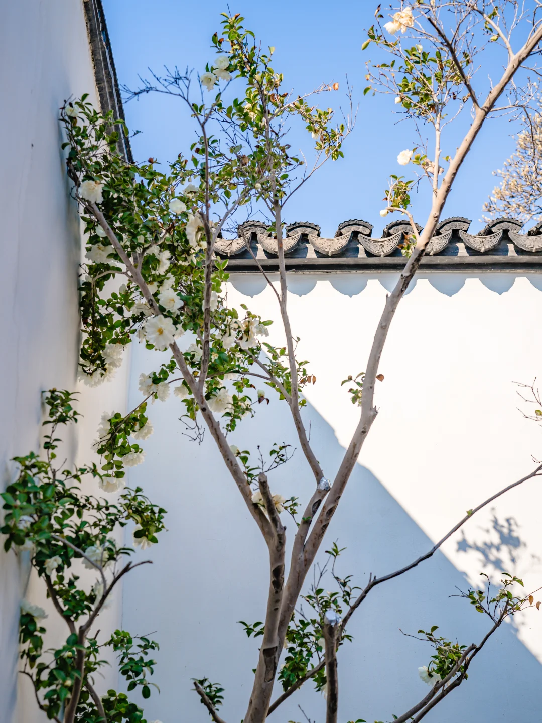 曲园的白茶花静静地开了…… 在灰墙黛瓦的映衬下, 没有半分争艳的喧嚣, 只是沉静地、饱满地绽放在冬日的清寒里…… 但多年前的我, 或许只会赞叹它的美丽与高洁, 却读不懂这份“小心翼翼”背后的深沉。 我忽然明白了…… 白色山茶花那“小心翼翼”的花语: “不要轻视我对你的爱” 并非胆怯,而是清醒的珍重。 它知道盛开不易、知道时光短暂, 所以用力地把握每一刻, 优雅地对待每一次绽放与零落。 这多像我们的人生啊, 许多梦想的绽放未必在预期的时节…… - 📍曲园 -