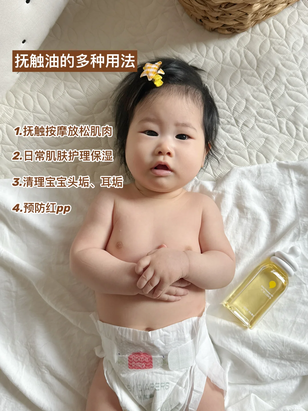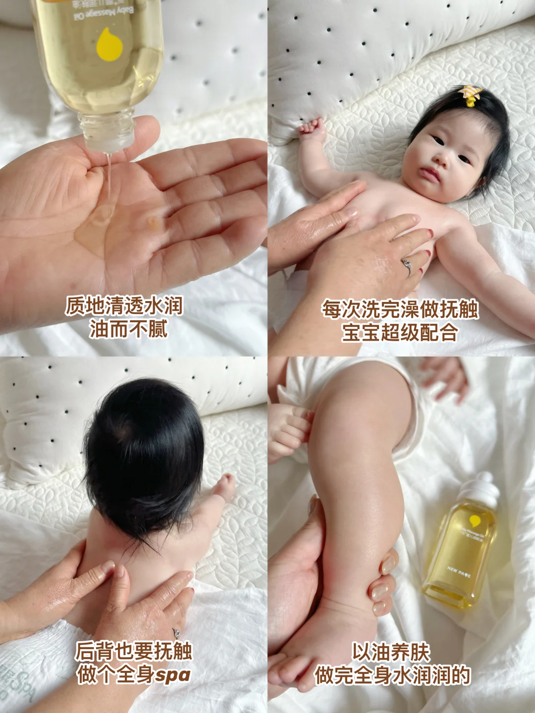 每次孩子洗完澡之后,就挤几滴轻轻按摩