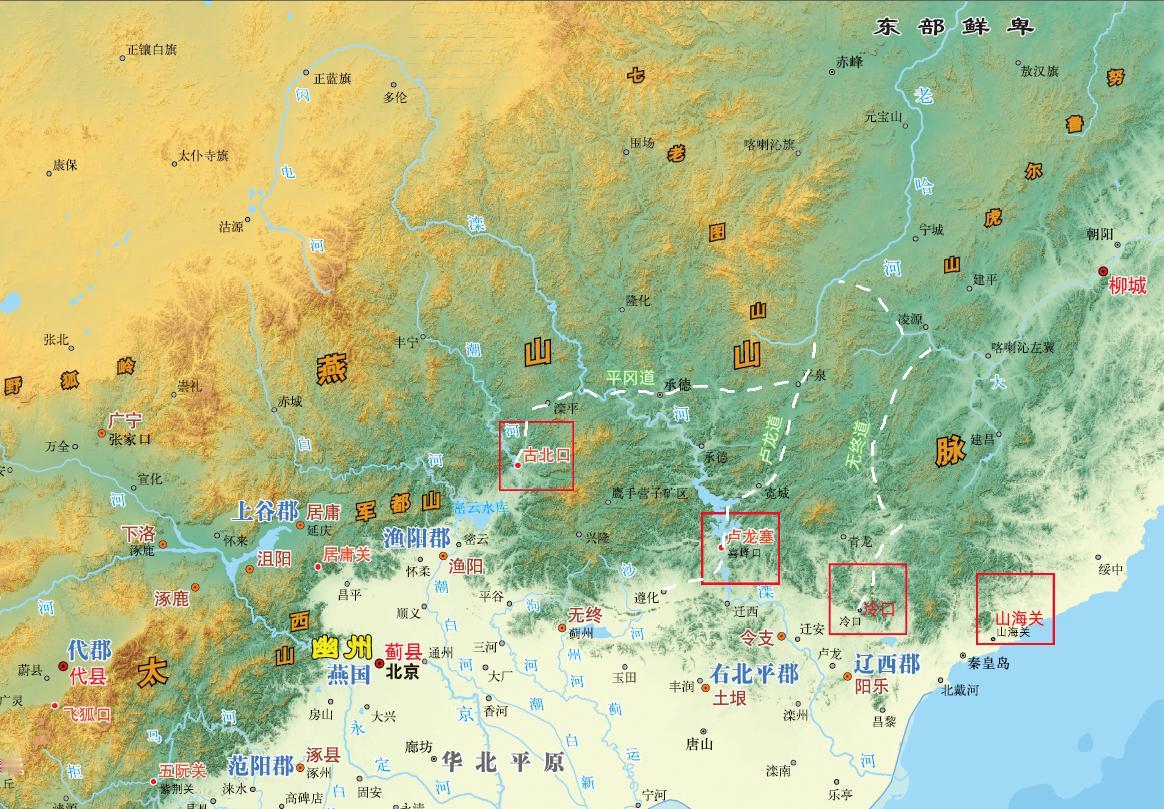 燕山东部的古道与关口 燕山山脉西高东低,东部的海拔并不高,有的地方甚至还没有蒙