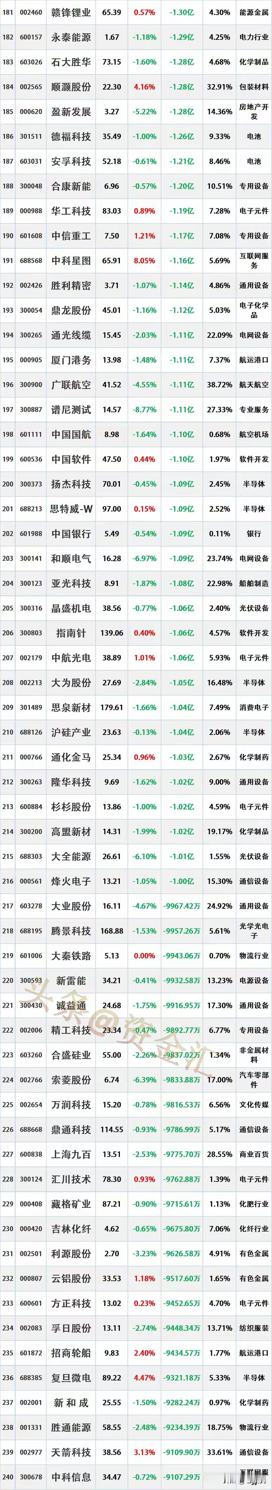 尾盘资金出逃,2026年1月9日主力资金大幅流出的股票名单。 统计时间:2026年1月9日 16:30
