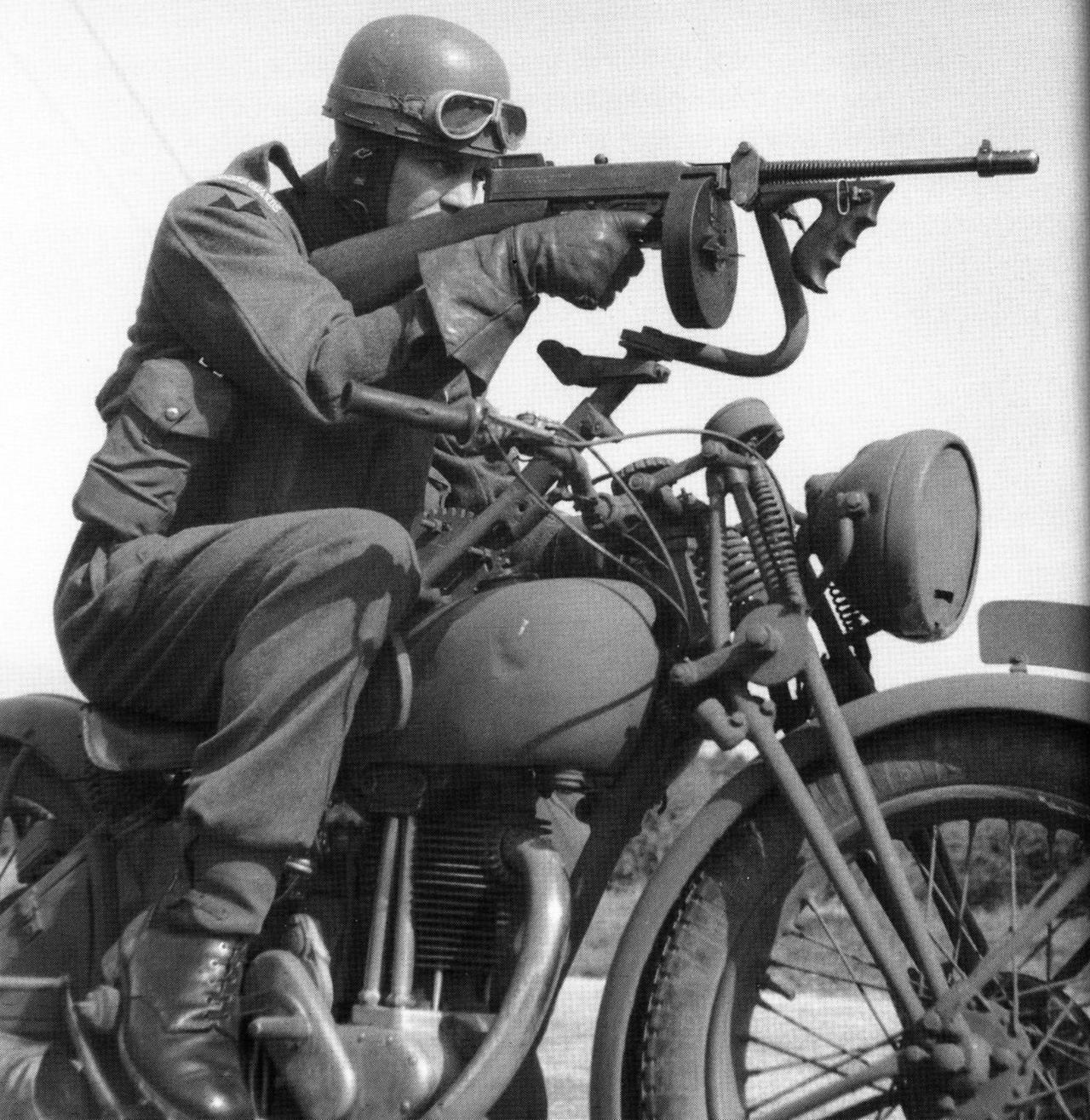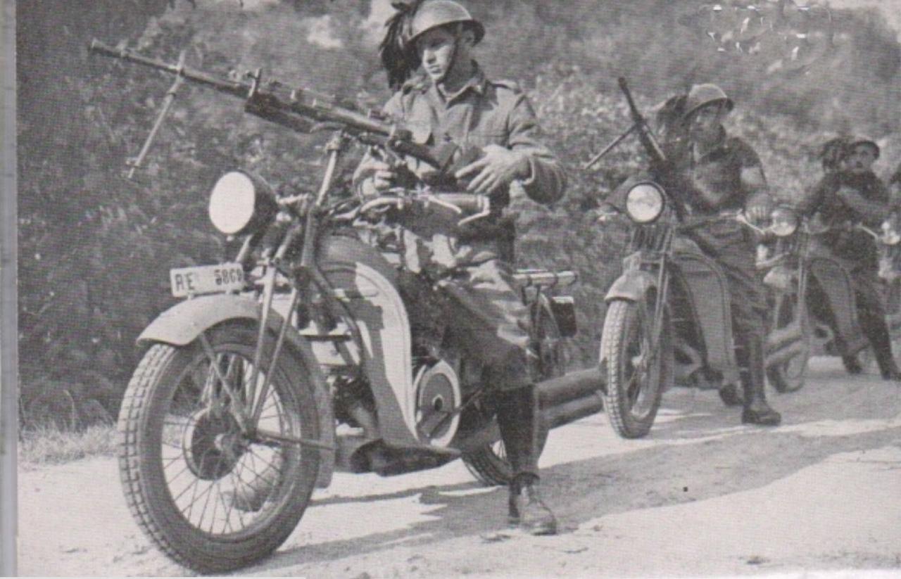 心理安慰罢了,作战效果很可疑——1941 年 4 月 9 日,英国皇家卫队第 7 卫队旅第 1 营掷弹兵连中尉梅莱恩代恩,演示驾驶摩托车行进中同时使用 “汤普森” 冲锋枪射击。 英国陆军第 7 卫队旅(7th Guards Brigade),是英军精锐的步兵部队,以纪律严明、作战勇猛著称。二战初期,该旅主要负责本土防御,应对德军可能的登陆作战。 1941 年,德军已占领西欧大陆,英军面临本土防御与敌后突袭的双重需求。摩托车作为轻便的机动工具,适合快速穿插、侦察与通信联络;“汤普森” 冲锋枪则是近距离火力压制的利器。英军中尉演示的技能,本质是骑兵式机动火力战术的现代化应用 —— 训练士兵在行进中保持火力输出,以应对德军装甲侦察部队或空降兵的突袭。 不过,冲锋枪的射程有限,而且驾驶人员要同时驾车并瞄准、射击,这么做的效果如何很成问题。其他国家基本上使用挎斗摩托,挎斗内的成员使用轻机枪射击,驾驶员则专注于开车。只有意大利会使用单人摩托,不过使用的是轻机枪,射程要比冲锋枪远得多(参见图6)。