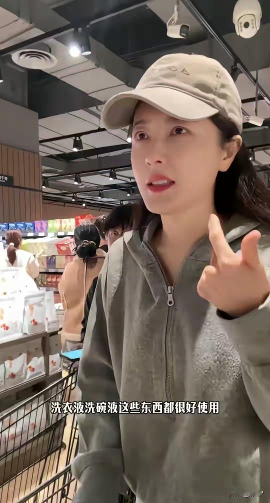 明星曾黎去胖东来购物, 穿着一身休闲服, 戴着一顶鸭舌帽, 整个一个素人, 在人