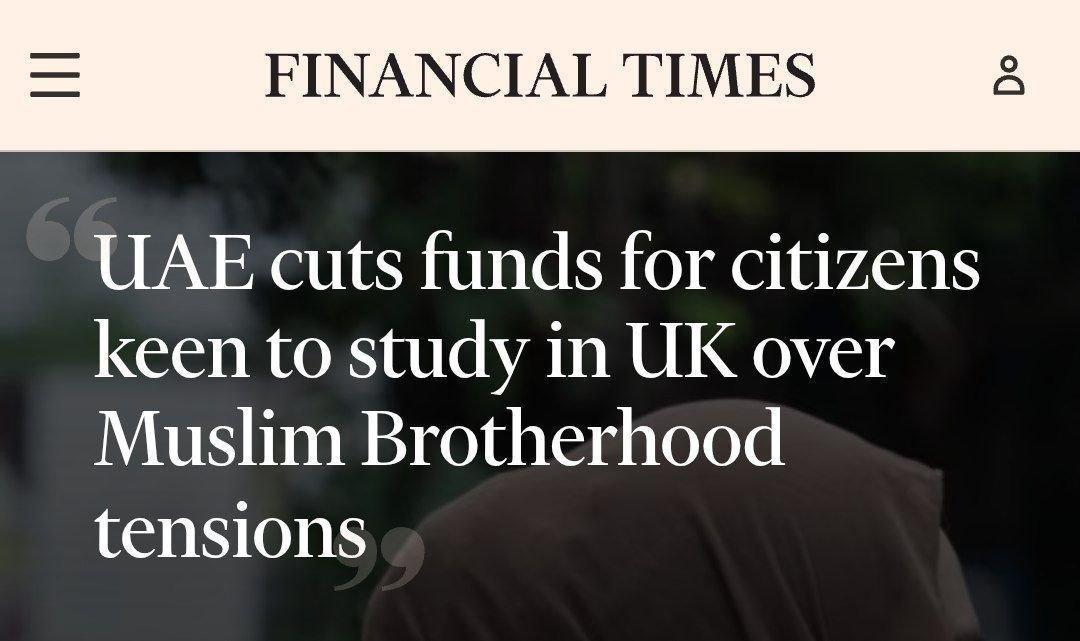 新闻快讯——据英媒报道,因英国拒禁穆斯林兄弟会,阿联酋限制本国在英留学生的政府资金支持,相关学生不再享有奖学金资格。阿方称此举是为避免本国学生在校园被激进化。