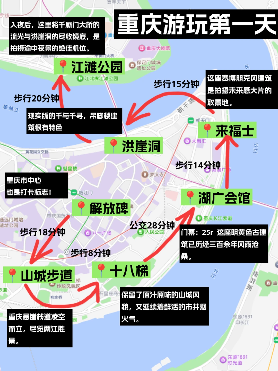 Day1:解放碑-山城步道-十八梯-湖广会馆-来福士-洪崖洞-江滩公园