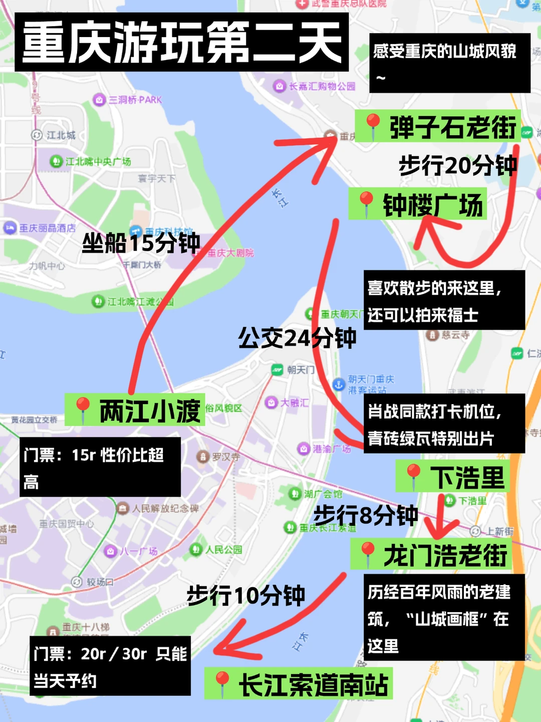 Day2:两江小渡-弹子石老街-钟楼广场-下浩里-龙门浩老街-长江索道南站