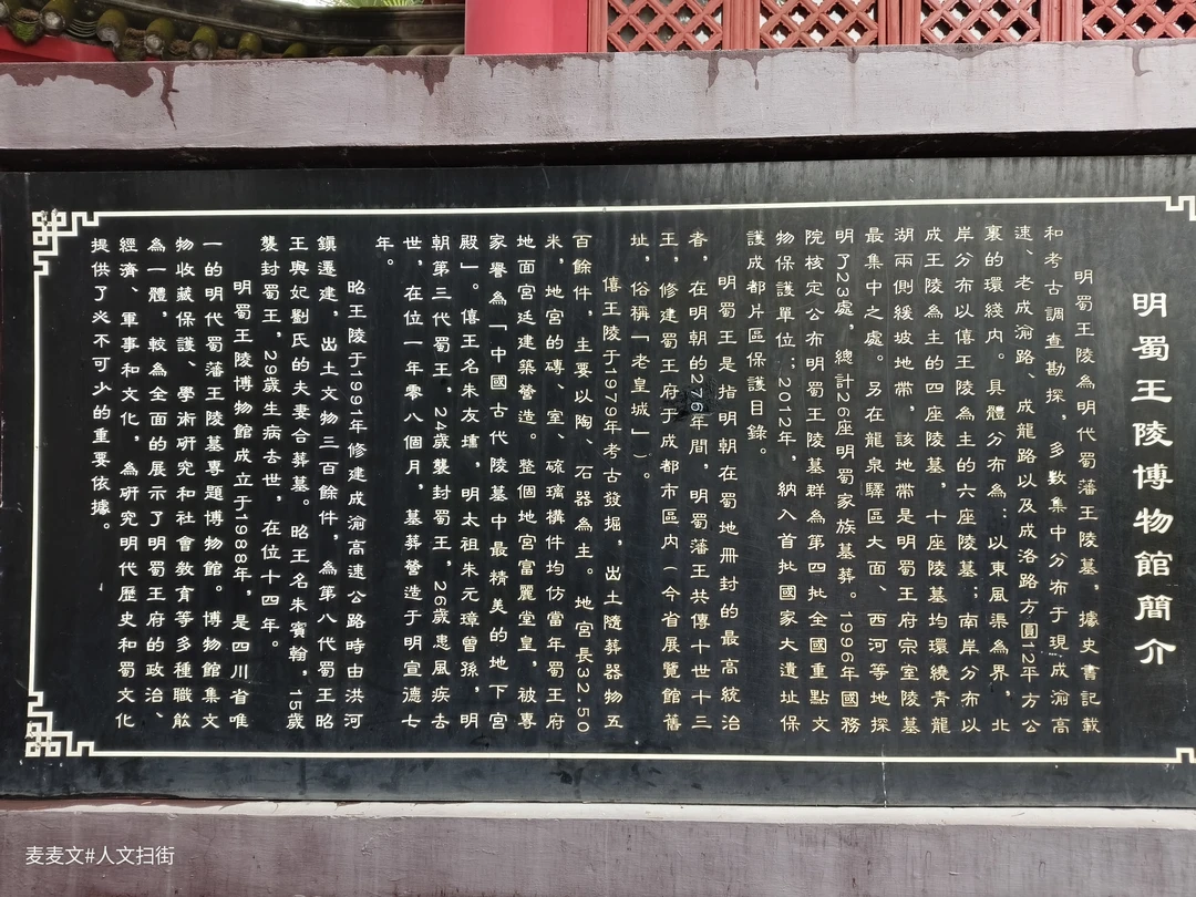 明蜀王陵,位于四川省成都市龙泉驿区十陵街道办正觉山山麓及青龙埂等地,以僖王陵为中心,形成了一处类似北京十三陵的王陵墓葬群胜迹,是明代(1368~1644年)藩王蜀王的家族陵墓群。