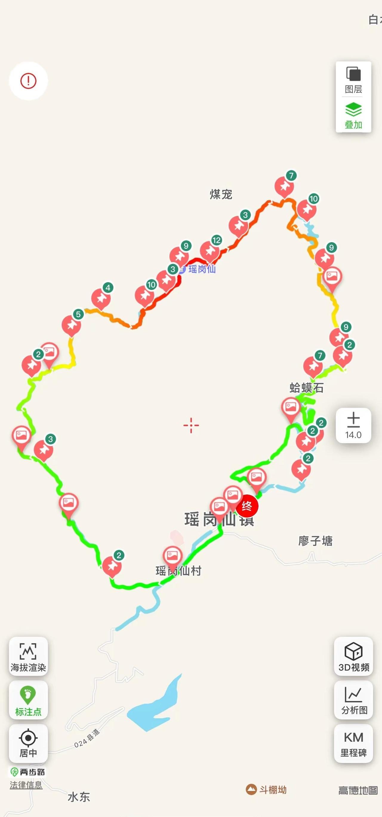 瑶峰大环线全程十五公里。爬山两步路户外助手