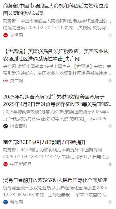 新消息!特朗普计划4月访华,他想重温当年与东方大国的合作氛围。没想到如今的他已经不再具有与东方大国谈判时的优势。三年来,东方大国一直在拓展与各国的贸易关系,而美国则在加征关税后失去了很多商业伙伴。 麻烦看官老爷们右上角点击一下“关注”,既方便您进行讨论和分享,又能给您带来不一样的参与感,感谢您的支持! 特朗普执政期间曾下令对中国加征关税,这一单边贸易保护主义行为当时就引发美国商界剧烈震荡。波音公司的飞机订单大幅下滑,汽车厂商也面临中国市场份额萎缩的难题,相关行业的产业链受到严重冲击,不少企业陷入经营困境。 如今特朗普若想在访华时重提关税相关不合理政策,必然不会被中国接受。中国在贸易谈判中始终坚持平等互利的原则,对于损害双方利益的关税壁垒,绝不会轻易妥协,这一点早已通过多次经贸磋商明确传递给美方。 过去三年,中国的贸易布局越来越全面。不仅深化了与东盟的产业链合作,让区域内产业协同更加紧密,还积极推进与欧洲的绿色能源项目,在新能源领域达成了多个重要合作。这些合作不是短期利益交换,而是长期稳定的共赢格局。 美国加征关税的政策恶果如今已全面凸显,最直接的影响就是国内企业和消费者承受着物价上涨的巨大压力。2025 年 11 月,美国咖啡价格同比上涨近 19%,牛肉价格上涨约 15%,住房成本在两年间上涨超过 14%,民众的生活负担越来越重。 对美国企业来说,关税带来的麻烦更具体。零部件供应被彻底打乱,不少依赖进口的制造业企业陷入 “无米下锅” 的困境,订单流失现象十分普遍。波音、汽车等曾经依赖中国市场的巨头,业绩下滑趋势明显,企业盈利受到严重影响。 特朗普心心念念的 “制造业回流” 目标,如今看来彻底落空了。富国银行的研究报告指出,美国制造业就业人数目前为 1280 万,远低于 1979 年 1950 万的峰值,要恢复往日规模,需新增约 670 万个工作岗位,这几乎与当前美国失业人口总数相当。 劳动力短缺、成本高昂成为制造业回流的最大障碍。咨询公司德勤与制造业协会预测,到 2033 年,美国新增的 380 万个制造业岗位中,近一半可能因技能差距和人口因素无法填补,再加上高达 2.9 万亿美元的巨额投资需求,让制造业回流变成了不切实际的幻想。 美国的农业也没能逃过关税的冲击,大豆、玉米农场主遭受重创。威斯康星州的大豆种植户面临价格 “腰斩” 的困境,从 2023 年每蒲式耳 13 到 15 美元暴跌至 9 美元,不少农场主年收入损失数十万美元,94% 的威斯康星家庭农场面临资金链断裂风险。 这种冲击还形成了恶性循环,农产品价格暴跌拖累了种子、化肥、农机等上下游产业。农民为特定作物定制的昂贵设备因改种而迅速贬值,农村社区的商铺空置率随农场关闭而攀升,2025 年第一季度美国农场重组破产申请大幅增加。 与此同时,中国的经济实力和贸易韧性持续增强。2025 年上半年,人民币跨境收付金额合计达 35 万亿元,同比增长 14%,其中货物贸易跨境人民币收付金额为 6.4 万亿元,占比达到 28%,收付金额和占比均创下历史最高水平。 如今人民币已是中国对外收支第一大结算货币,全球第二大贸易融资货币、第三大支付货币。在东盟和非洲等市场,离岸人民币的使用越来越广泛,这背后是中国贸易影响力的提升,也是国际社会对中国经济的认可。 美国商界对重启贸易摩擦的反对声音越来越强烈。关税政策让美国企业额外增加了巨额成本,有数据显示 2025 年相关成本预计达到 1.2 万亿美元,这些成本最终大多转嫁给了消费者,形成了 “企业抱怨、民众不满” 的双重困境。 民调数据也反映出美国民众的真实态度,70% 的美国人认为生活成本 “不太可负担” 或 “完全不可负担”,55% 的民众将高物价归咎于美国政府,即使在特朗普的支持者中,也有 21% 认为关税目前损害了美国经济。 特朗普政府的关税政策还引发了国际社会的连锁反应,加拿大、墨西哥、日本等多个贸易伙伴纷纷采取反制措施,美国的对外贸易环境持续恶化。原本的商业伙伴变成了贸易对手,让美国在全球贸易中的话语权不断削弱。 对比之下,中国的供应链韧性在全球范围内得到认可。在复杂的国际环境中,中国始终坚持开放合作,为全球企业提供稳定的生产和贸易环境,这也是众多跨国公司不愿放弃中国市场的重要原因。 特朗普此次访华,与其说是寻求新的合作机会,不如说是对其过去失败贸易政策的一次清算。当年的关税大棒没能达到预期目标,反而让美国自身陷入多重困境,如今想要重新回到谈判桌,只能放下霸权思维,以平等的姿态寻求共赢。 中国从来都不排斥合作,但合作必须建立在相互尊重、平等互利的基础上。如果特朗普政府依然抱着过时的霸权逻辑,试图通过施压获取不合理利益,访华之行很难取得实质性成果。