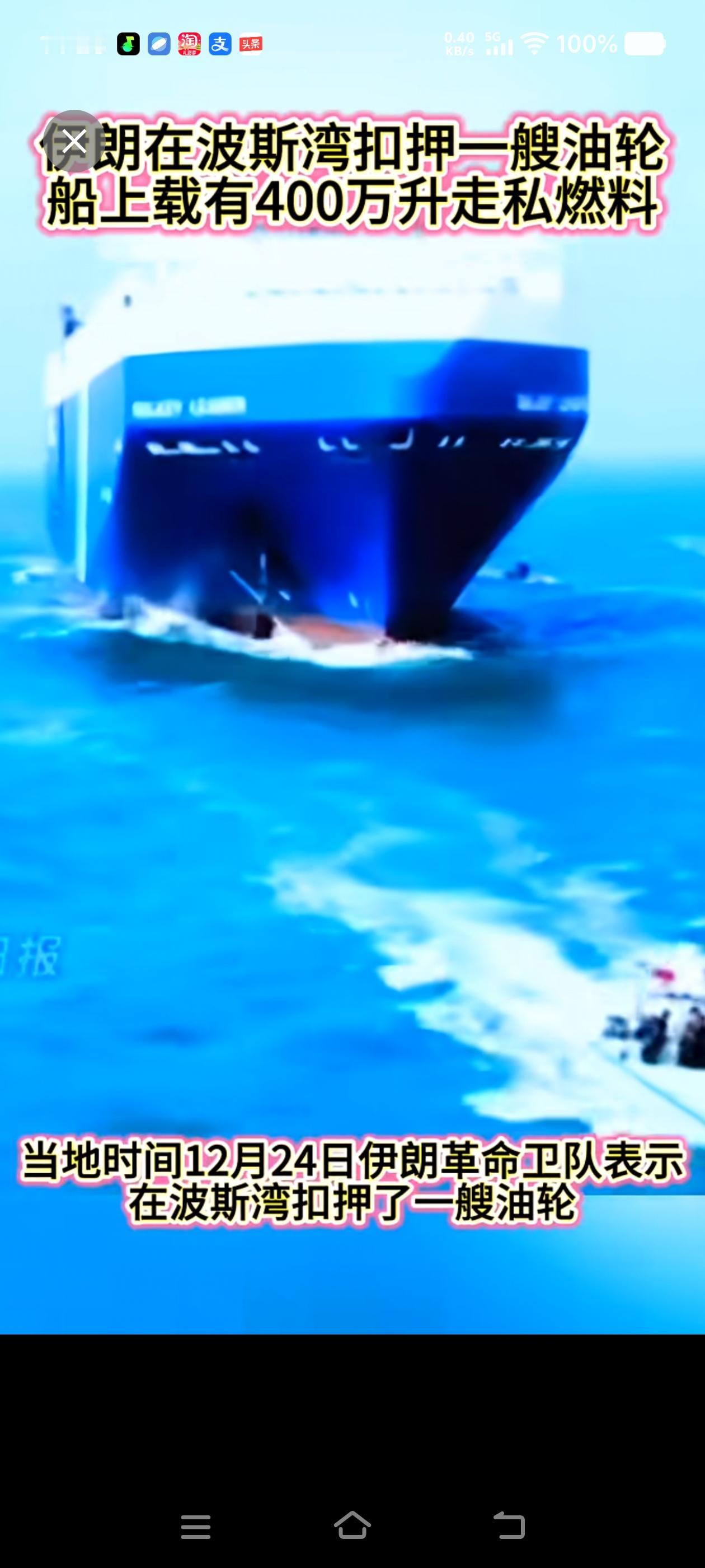 世界最强硬对抗。12月24日,伊朗革命卫队声称,在波斯湾海域拦截了一艘油轮,上面装有400万升走私燃料,据可靠消息,这艘船是美国人的。虽然伊朗表示,在自家领海打击走私是依据本国的法律法规,但是实际就是对美国在加勒比海抢油的对抗,既然你美国不遵守世界公约,要做无法无天的强盗,那么,我们伊朗也可以在波斯湾和阿漫湾做同样的事情,你们针对委内瑞拉和古巴,那我们就要针对你。伊朗的这次拦截走私船只,受到全世界人民的注目和点赞👍🏻一个国家强不强大并不重要,重要的是要有抵抗的勇气和不服输的气质。在当今世界,美国是全球最强大的国家,如果大家都眼睁睁的看着美国横行霸道而不予抵抗,认其宰割,那岂不是都成了美国的附庸。