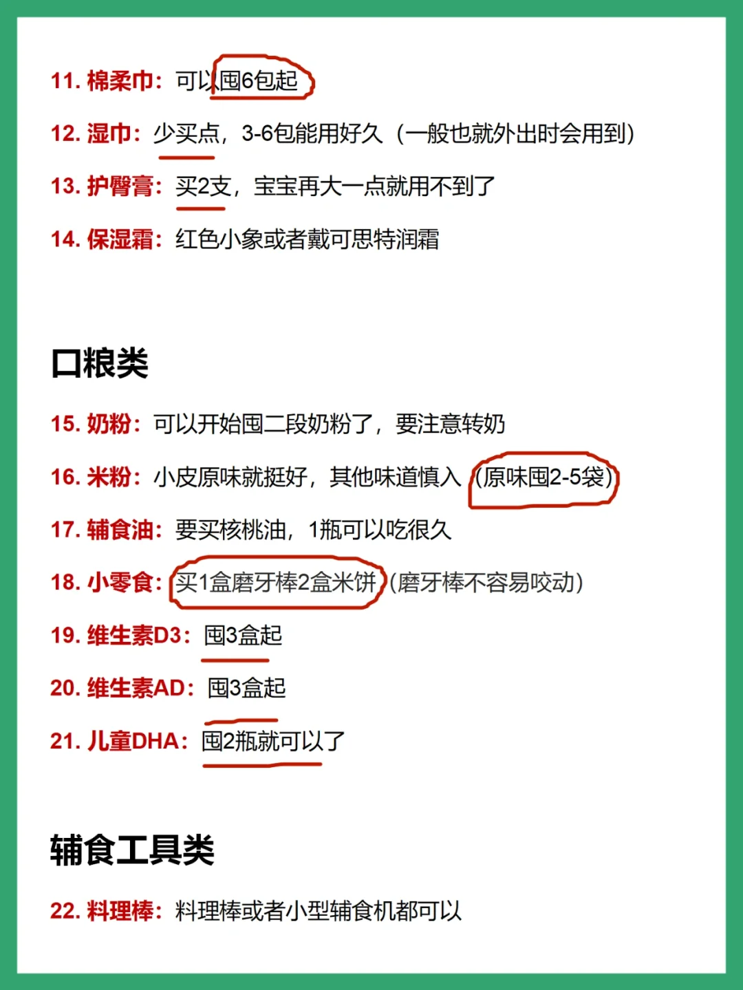 💢宝宝肠胃发育相对健全了,6月龄可以开始给宝宝喂辅食了,我们要买相对的辅食工具,要买米粉、辅食油等。