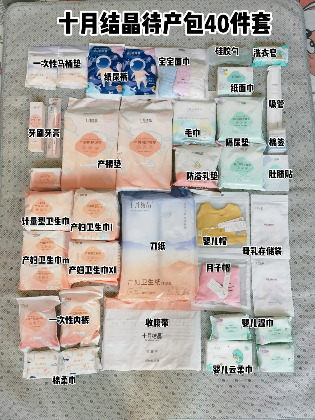 买买买的话,可以买十月结晶家待产包40件套,再对照我给大家的清单打对勾查漏补缺就可以了✅✅✅套装最大的优点是省心省力,如果单独一个一个买,买40多件真得费精力,每件都得货比三家,买上了还要去拿快递,拿上快递回家还要一个一个拆掉外包装,累啊😭