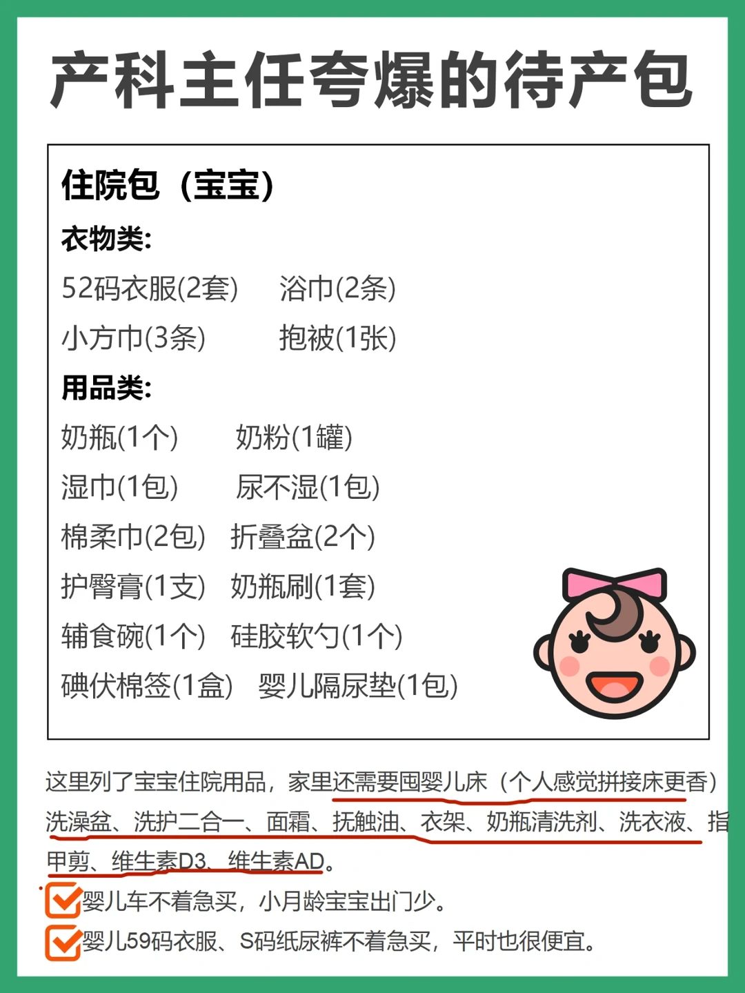 顺产生娃后要在医院住3天,剖腹产5天,我们只需要准备好这几天的东西即可,不用大包小包往医院抗,会非常乱。
