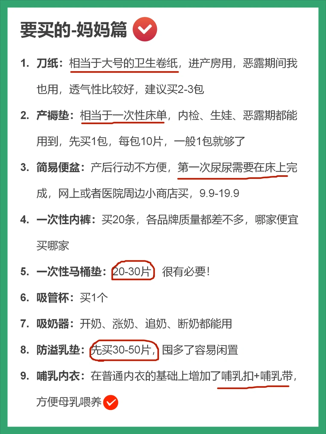 ➡️要买的-妈妈篇用品