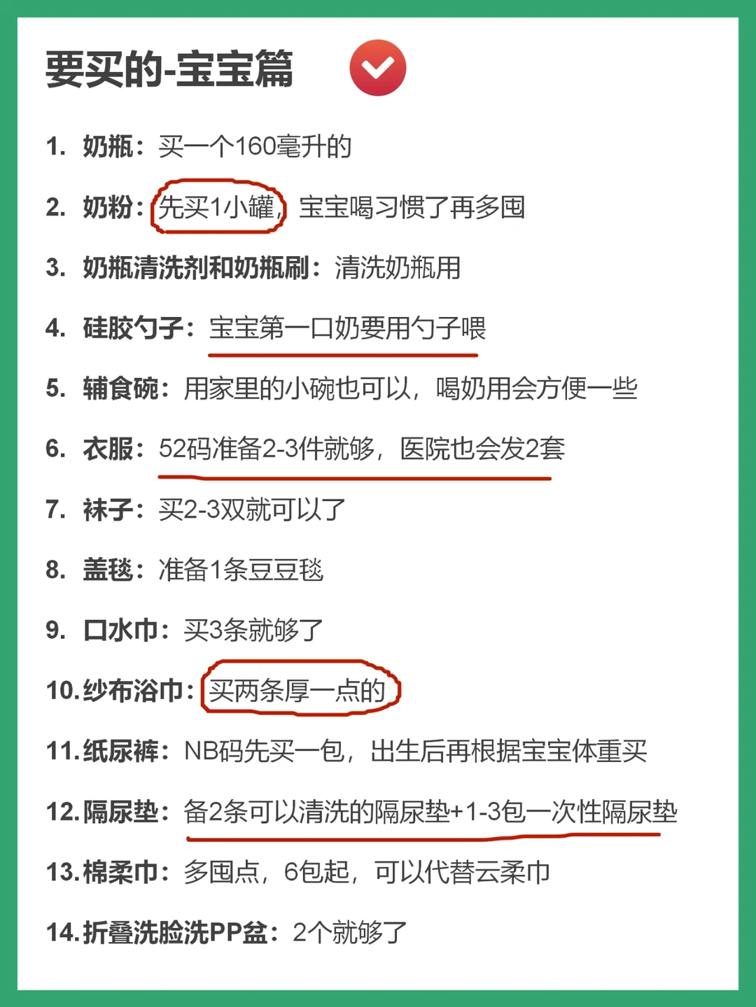 ➡️要买的-宝宝篇用品(这里只罗列了住院待产这块的用品,还有一些日常用的,大家可以翻一翻《宝宝出生,一定要有的27件刚需品》)