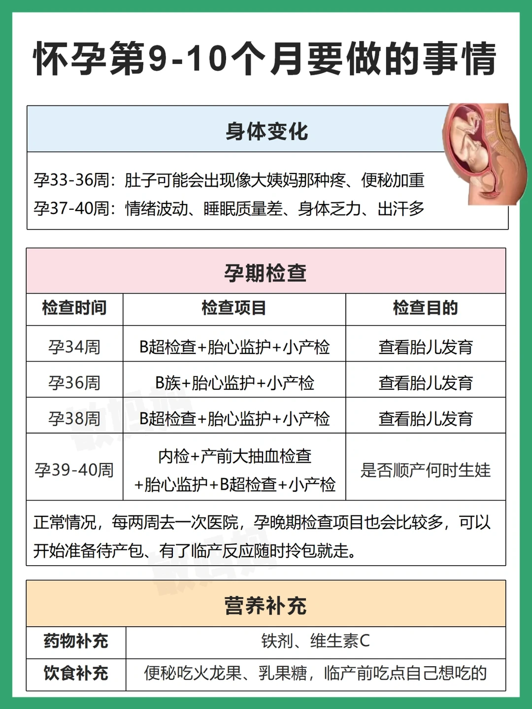 准妈妈们不用过于焦虑,做好防护,按时体检,这里总结了怀孕1-10个月的身体变化、产检项目、营养补充、购买清单,供参考~