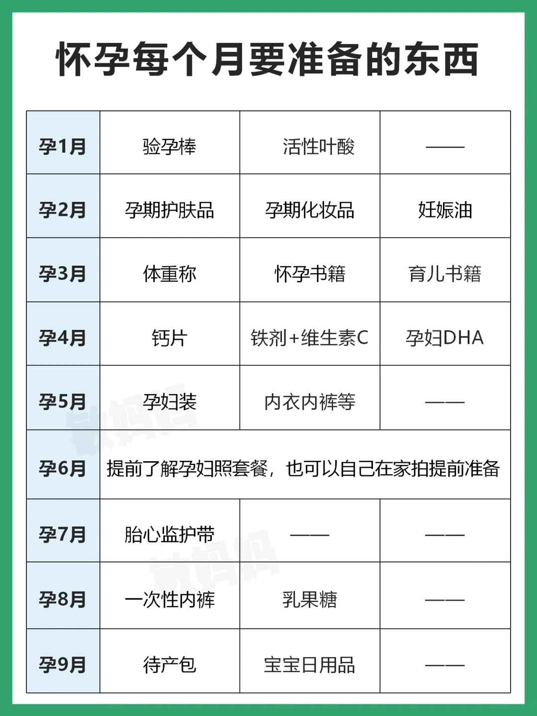 怀孕后每个月要准备什么,基本就这些了,准妈妈们可以查漏补缺。