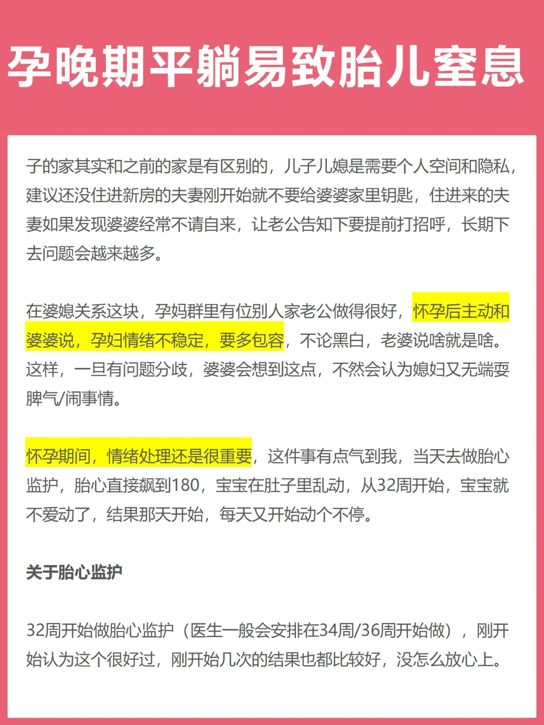 孕晚期,情绪真得还蛮重要,老公一定要多体谅,如果和婆婆有代沟,相处不愉快,也要及时分开,不要影响到自己,不然睡不好吃不好。