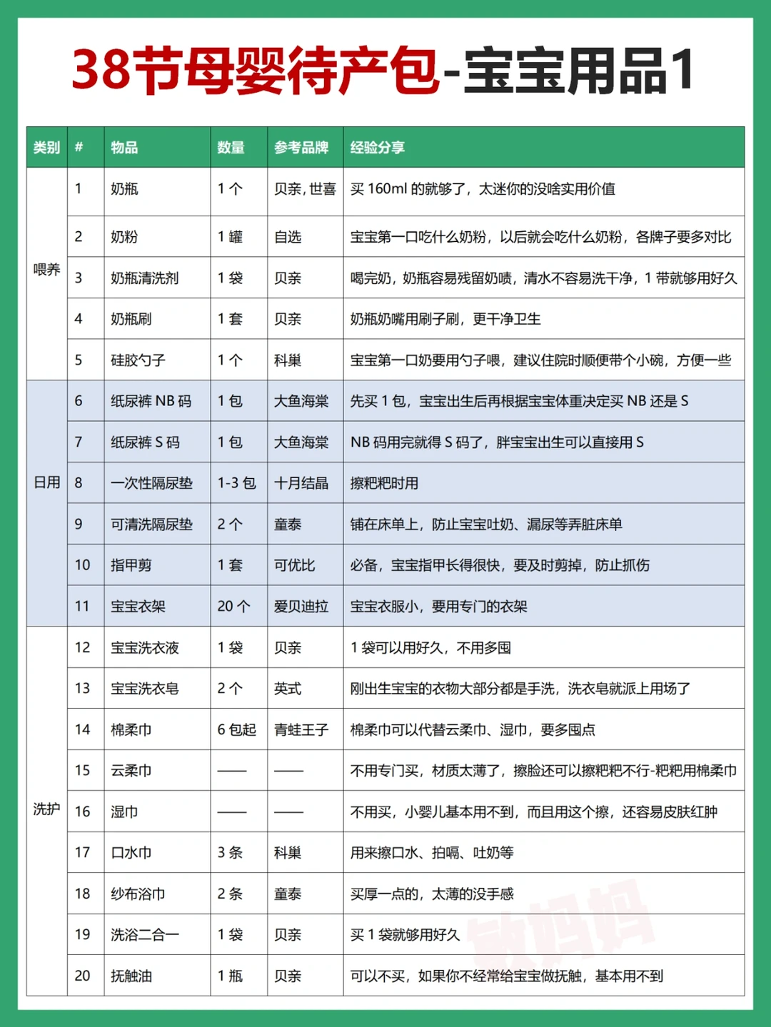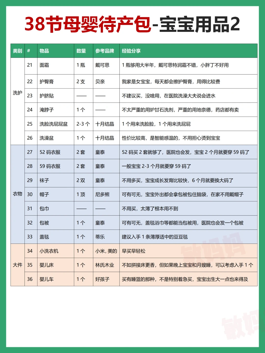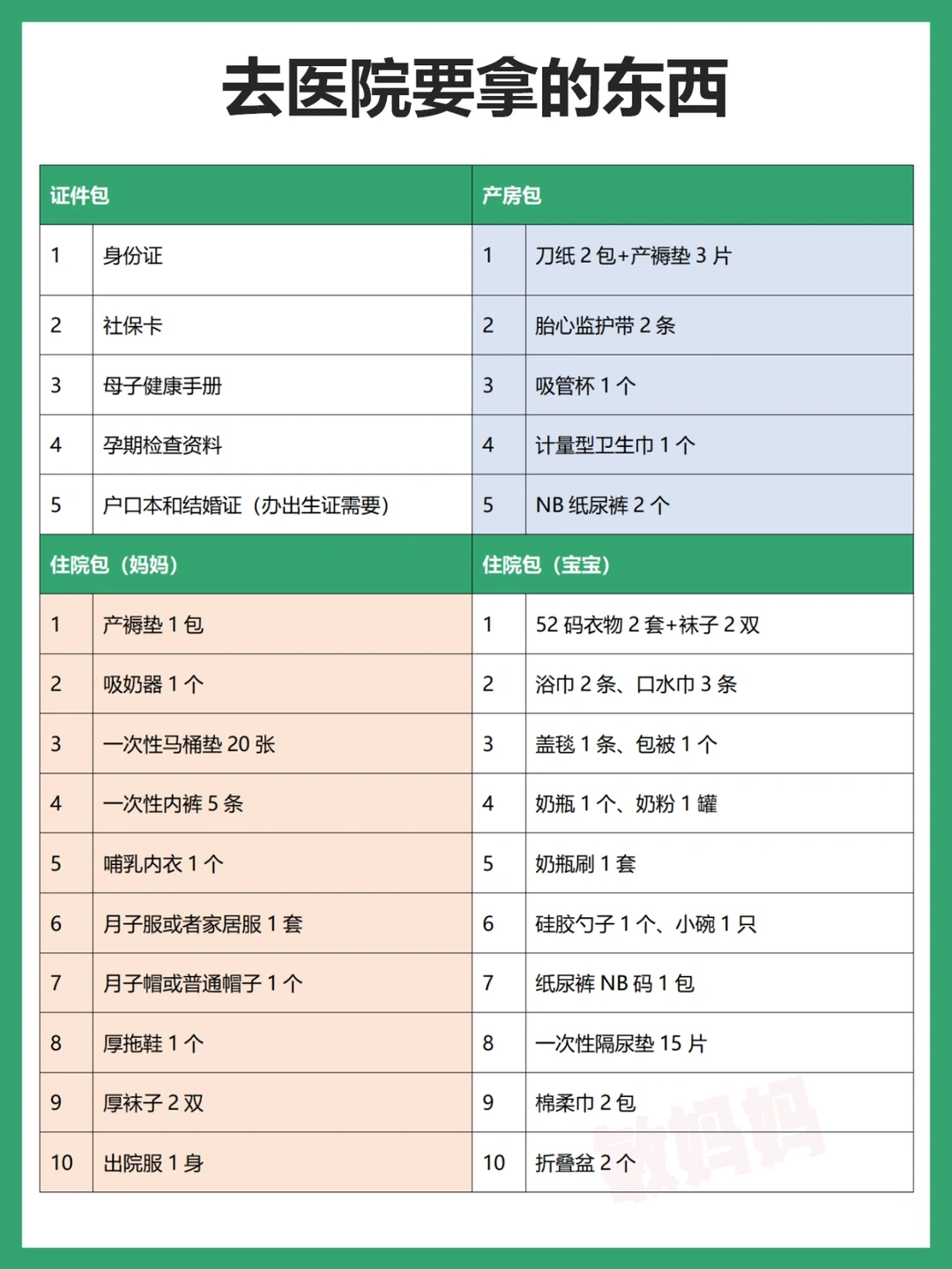 3⃣️住院妈妈用品4⃣️住院宝宝用品