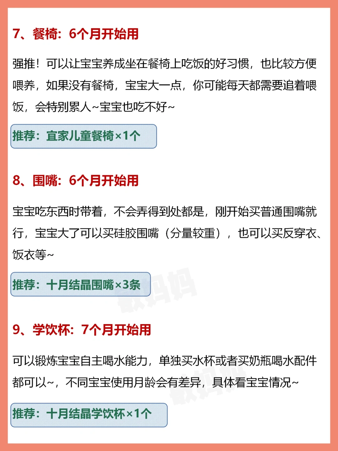 辅食碗+勺、注水碗、餐椅、围嘴、学饮杯