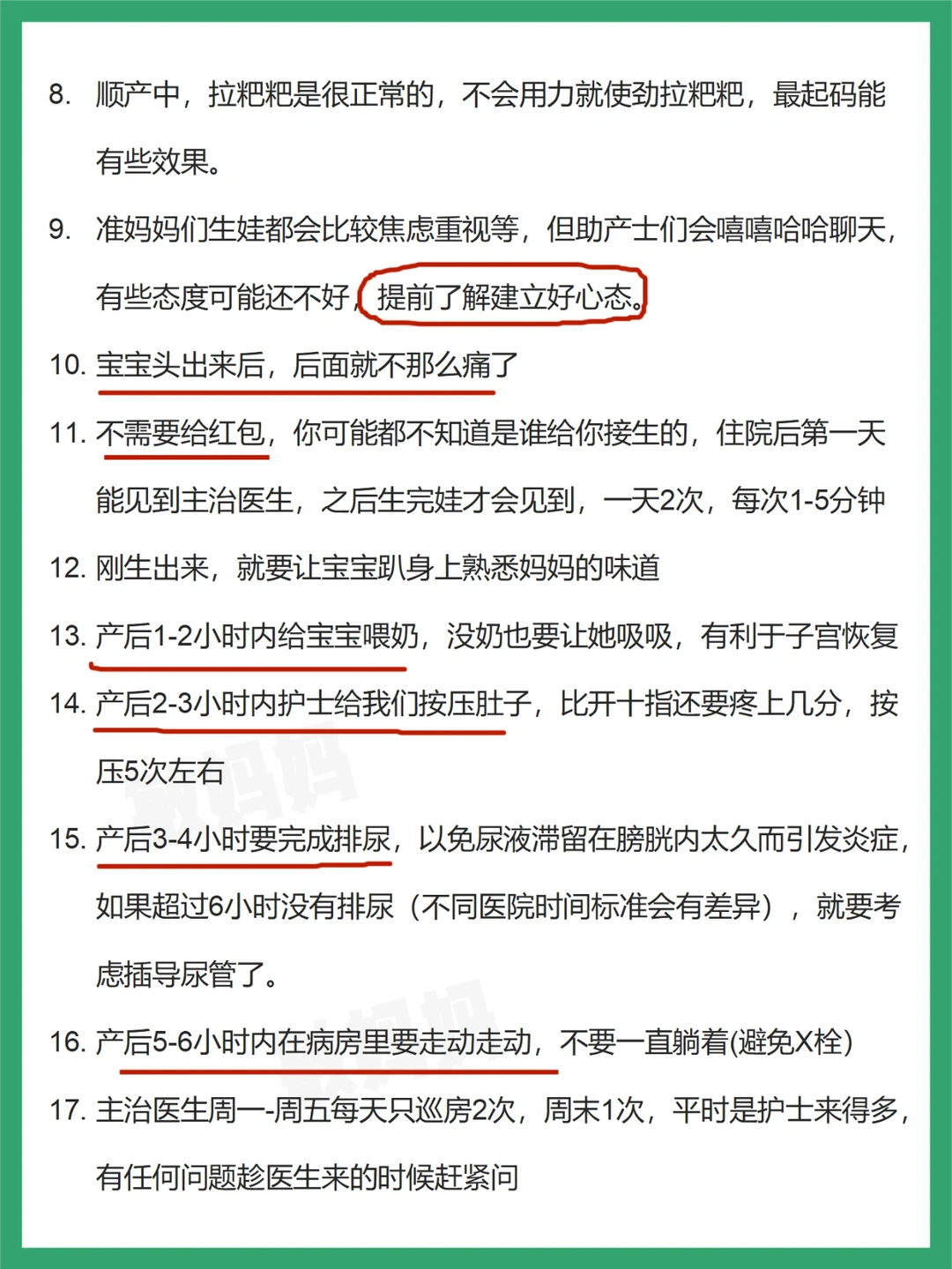 没人告诉我临产征兆不强→如仅见红😪不用着急住院,没人告诉我内检也可以不用太过频繁😪,没人告诉我打无痛要提前说,打了无痛还会疼,生完孩子还要生胎盘,生了胎盘还要缝合撕裂,出了产房还要经历按压肚子之痛👩🏻👩🏻👩🏻除了按压肚子,还要经历生理性涨奶疼痛……而且产后也会宫缩疼……
