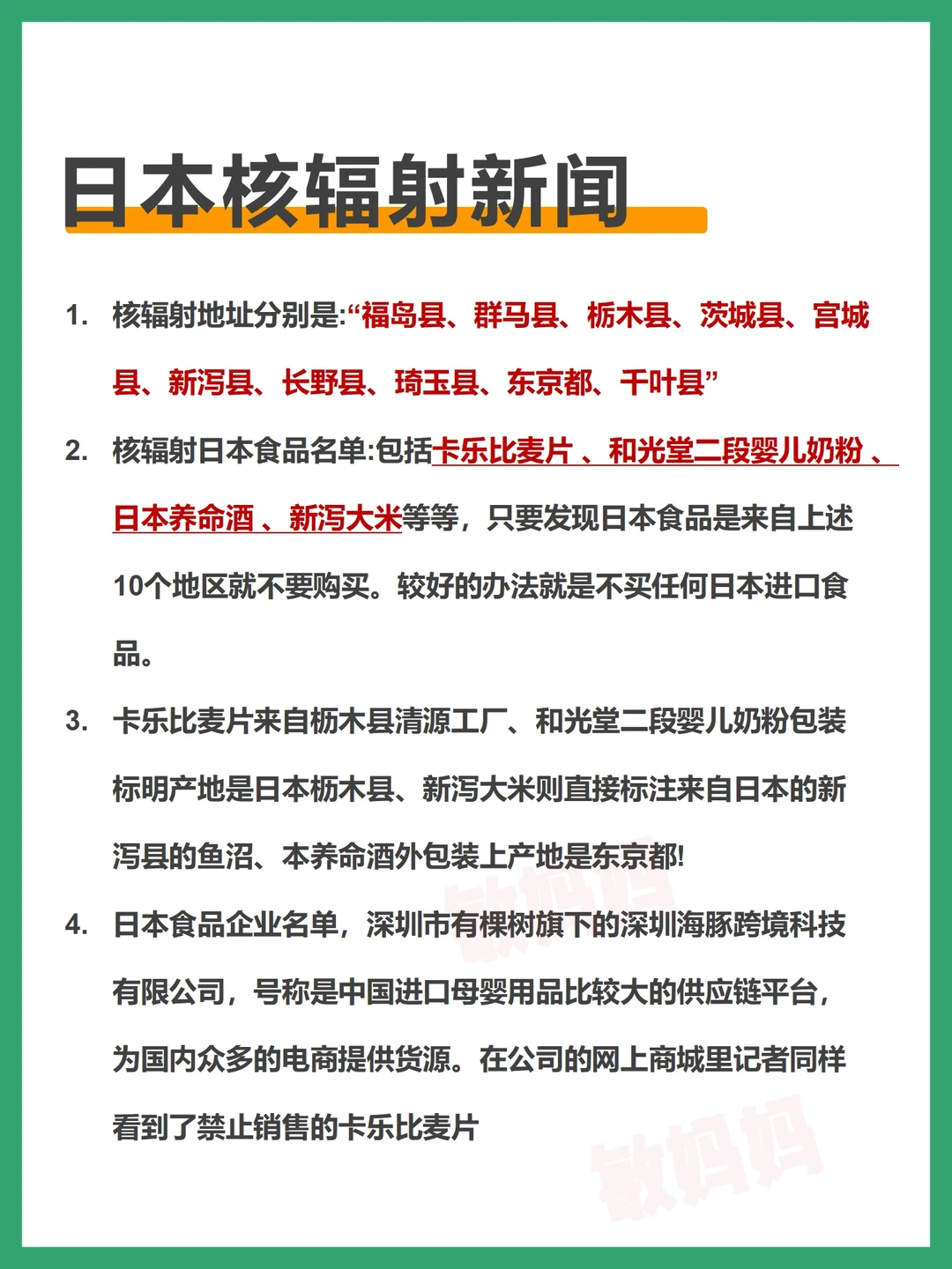 核污染实锤了! 日本产地辐射母婴品牌避雷 日本产地辐射护肤品牌避雷 日本核辐射地区范围 这些妈妈们都要了解,收藏避雷‼️