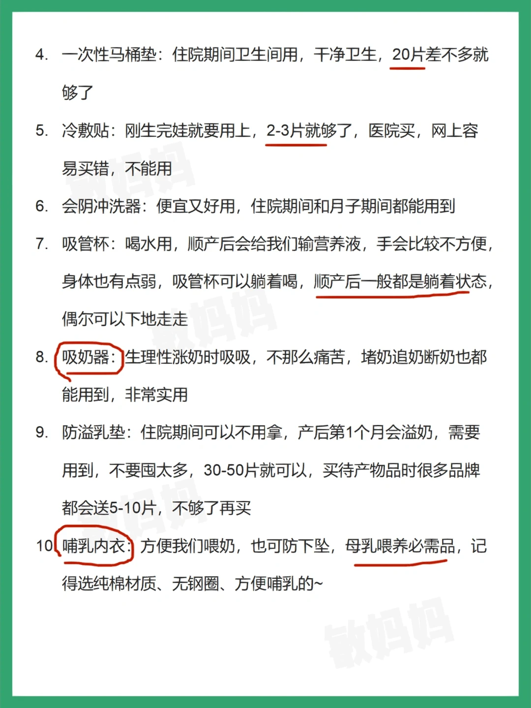 1⃣️产褥垫:1包10片基本就够了