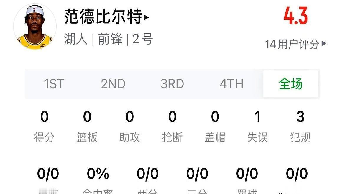 湖人防守悍将范德比尔特,终于等来了赛季第一次首发。 教练雷迪克给了他机会,场边的镁光灯跟着他的球衣闪。 结果哨声一响,他就像在场上隐身了。 进攻端,球在他手里烫得拿不住,一个没留神,直接失误送了出去。队友跑出空位,他连出手的念头都没有。 防守端,更是灾难。对手一个变向,他伸手就搭了上去,裁判的哨子立刻响起。第一次犯规。紧接着,又一个防守回合,几乎是同样的动作,第二次犯规。 场边的雷迪克,双手抱在胸前,脸上的表情一动不动。 第三声哨响,第三次犯规。范德比尔特几乎是小跑着下场。 7分钟,像一个世纪那么漫长,他坐在板凳席上,毛巾盖着头,而背后的大屏幕上,他的得分、篮板、助攻那一栏,清清楚楚地亮着三个刺眼的零。 信任这东西,给了你,你得接得住。 接不住,那以后就真的没机会了。