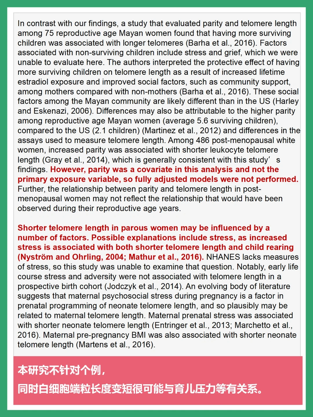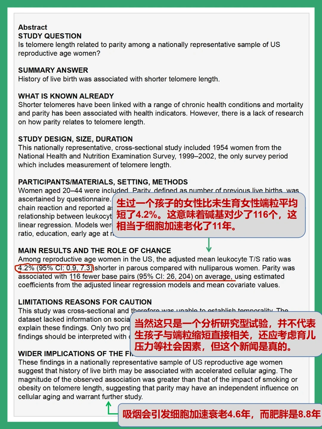 当然这只是一个分析研究型试验,并不代表生孩子与端粒缩短直接相关,还应考虑其他因素如育儿压力等👩🏻
