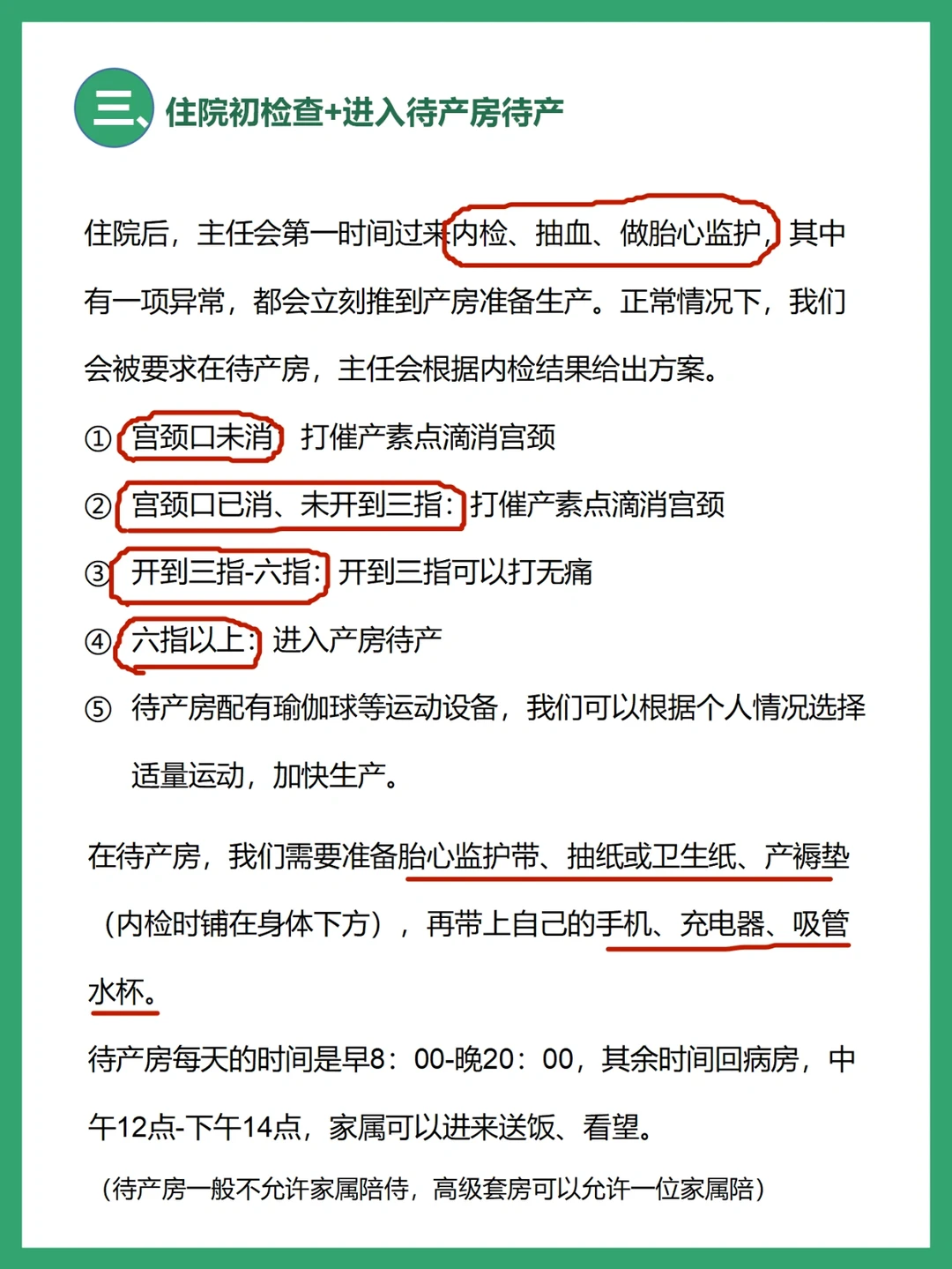 3⃣️住院初检查+待产房待产