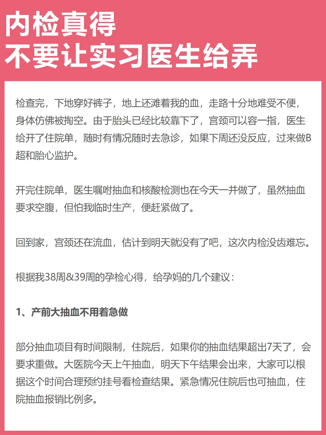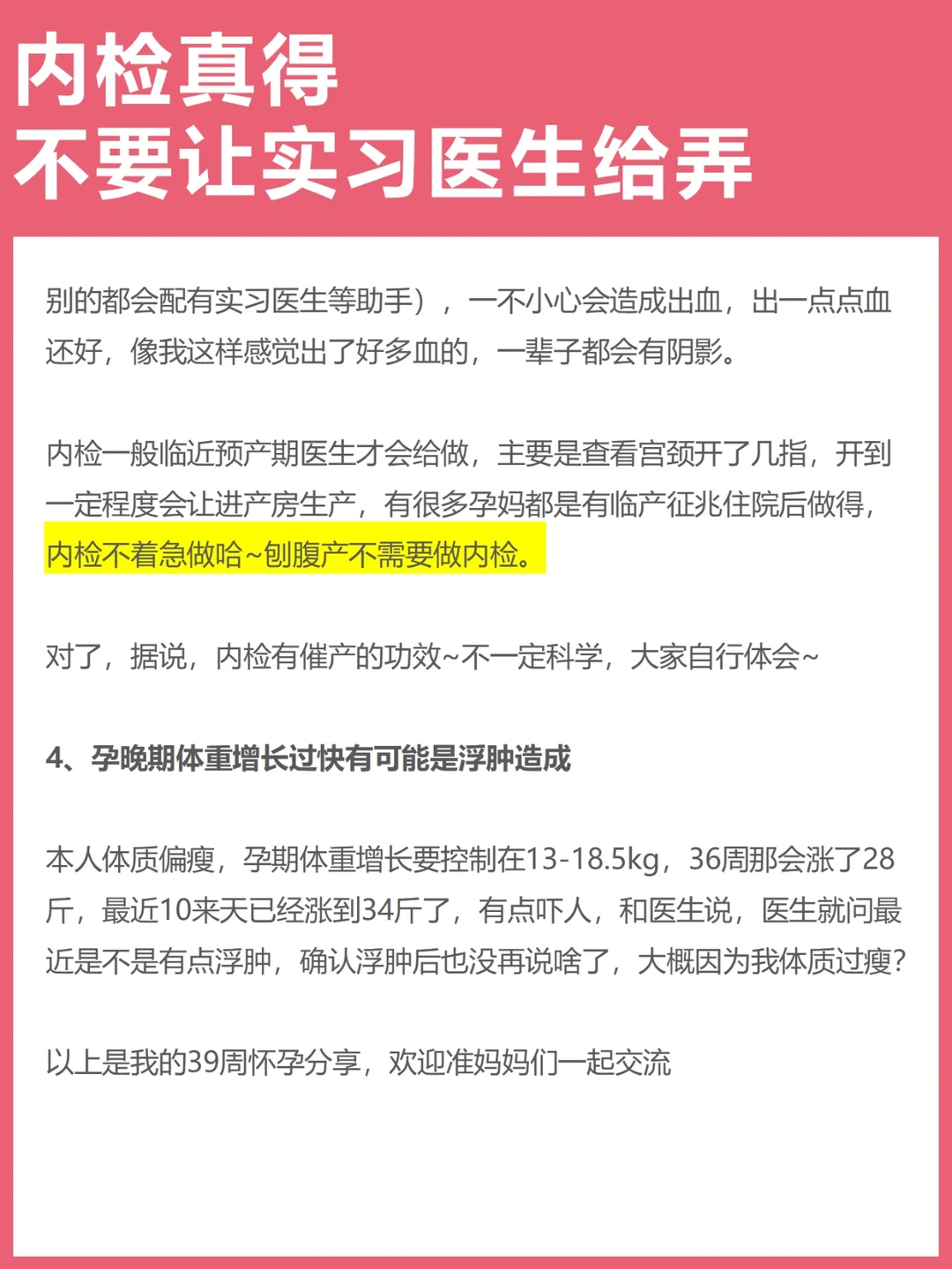 【孕39周】令人闻风丧胆的内检需要注意什么