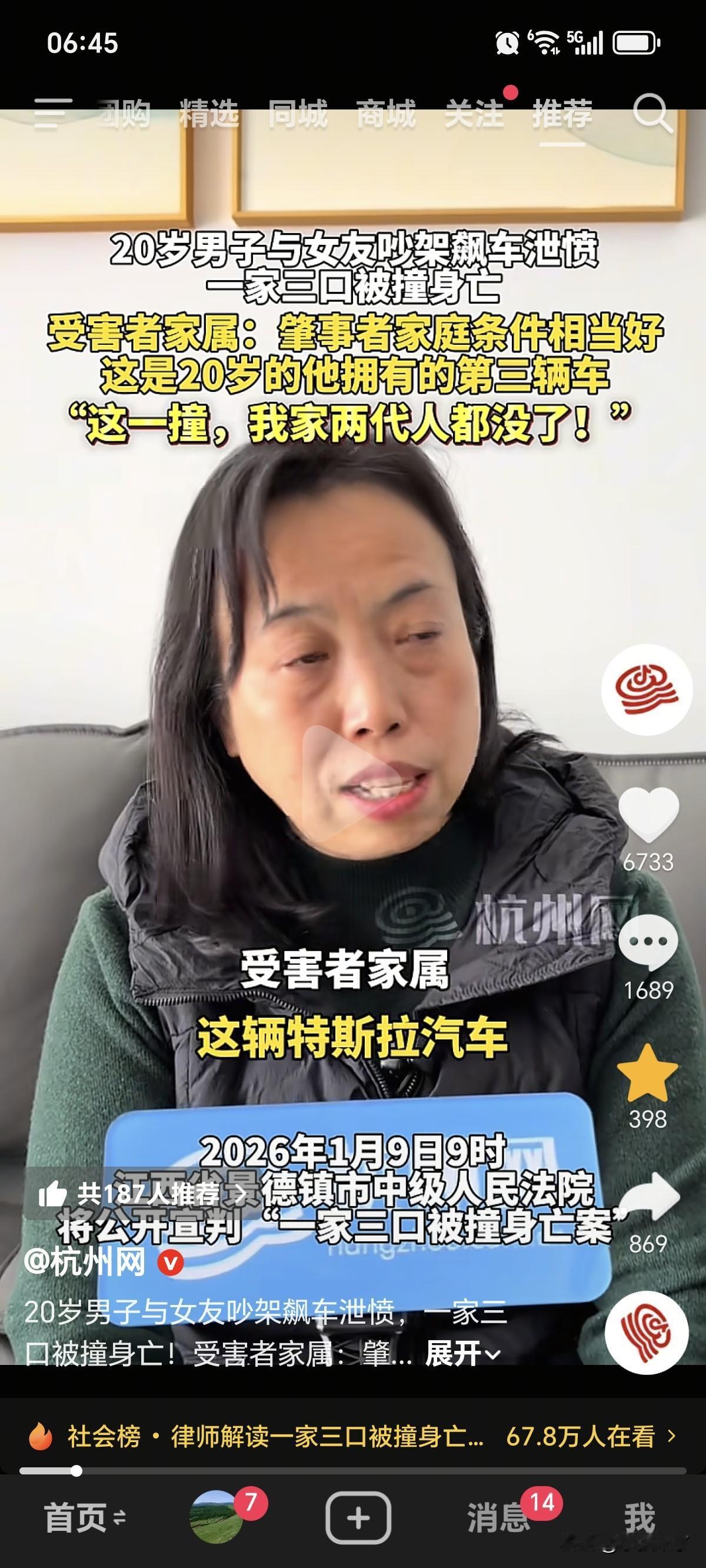 听了“景德镇一家三口被撞身亡”受害者家属的描述,用老话,惯子如杀子来形容很恰当。原来,司机廖某,不好好学习,16岁初中毕业之后,就不想读书了,按理说,家庭条件好,这么小的年龄,怎么也应该去私立高中,或者职业技术学院,否则整天在家闲着,干什么? 可父母过于溺爱,听了儿子的意见,放任在社会上混迹,没钱了就给。18岁拿到驾驶本,一直到20岁最后一辆特斯拉,已经是第三辆了,这种更新换代的速度,让人吃惊,也万万没想到,父母竟然同意了。最后导致,廖某性格扭曲,毫无责任感,天不怕地不怕,这种人迟早会栽跟头呀。父母有钱有什么用呢?没能够教育出一个好儿子,也是终身的遗憾。 以上内容来自1月8号记者的采访。