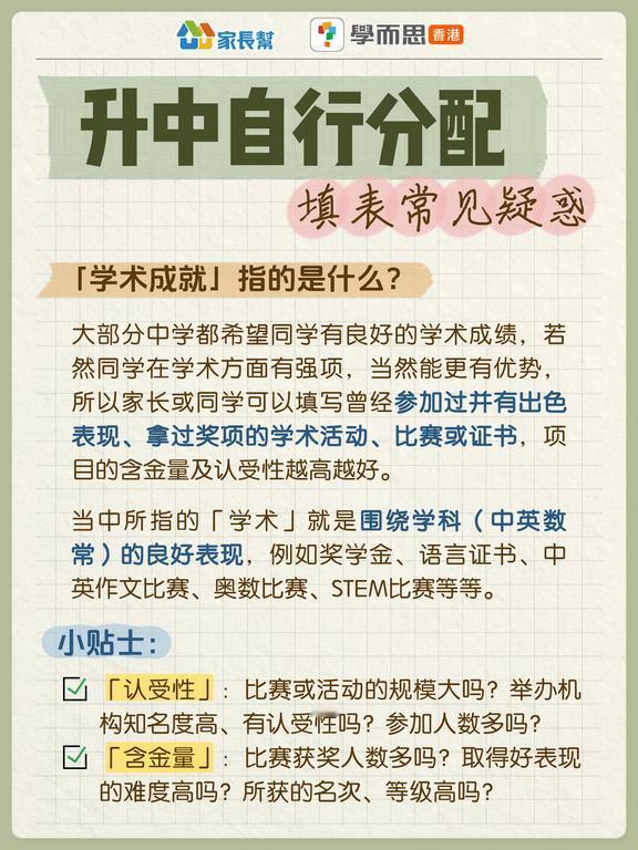 升中自行分配学位🌟填表常见疑惑🤔 升中自行分配学位已经进入倒计时啦⚠️大家想好选哪间心仪中学了吗😆?虽然只有两个选择,但也要认真考虑喔😉 往年常常听到家长问课外活动那部份该怎么填🤔小朋友参加过很多课外活动,但位置有限,不能全部写上,该如何选择好😵💫?赶紧看看香港学而思家长帮给大家整理好的🌟升中自行分配🤔填表常见疑惑🌟 香港 香港升中 香港小升中 香港中学 香港小学 香港小学生 香港中学生 香港教育 香港呈分试