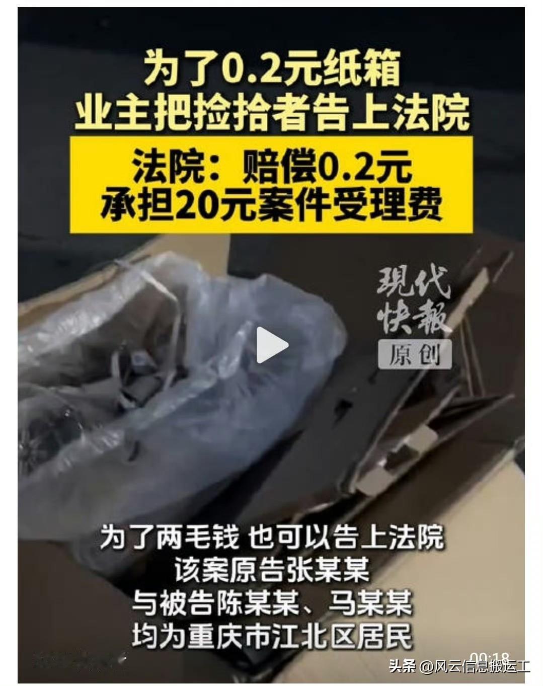 偷拿纸箱被告法院判赔两毛 为了两毛钱也可以告上法院。 门槛低,所以各地法院案