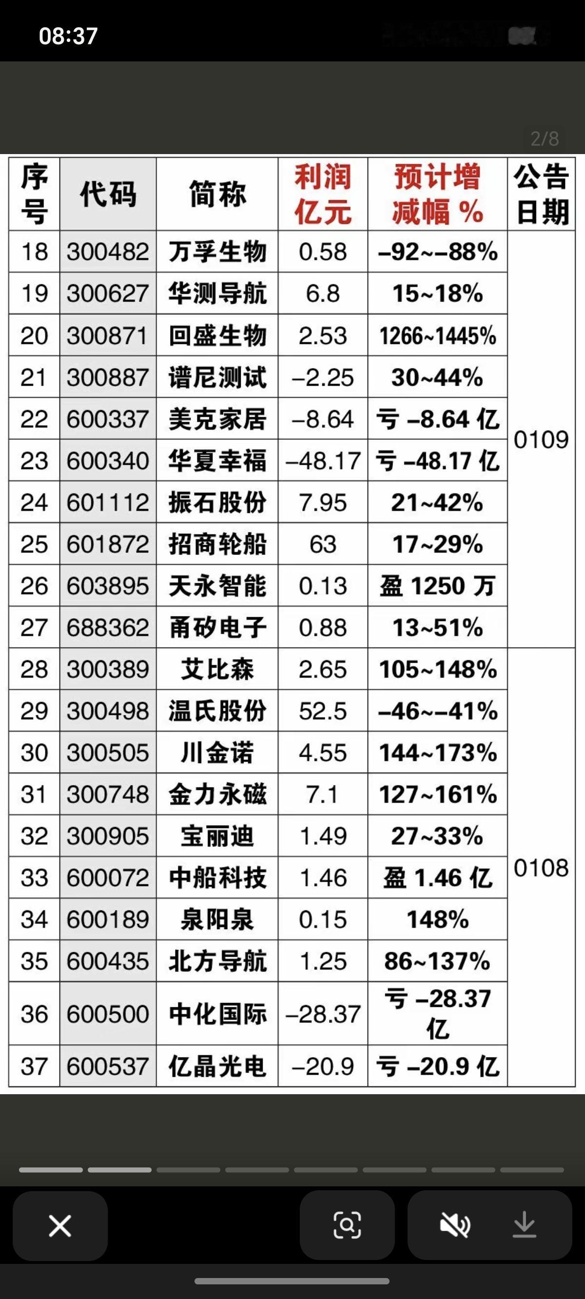 1.10周六 最新:部分公司25年业绩预告 预减预亏的公司尽可能远离! 特别是那些连续多年亏损,且营收低于3亿的公司。