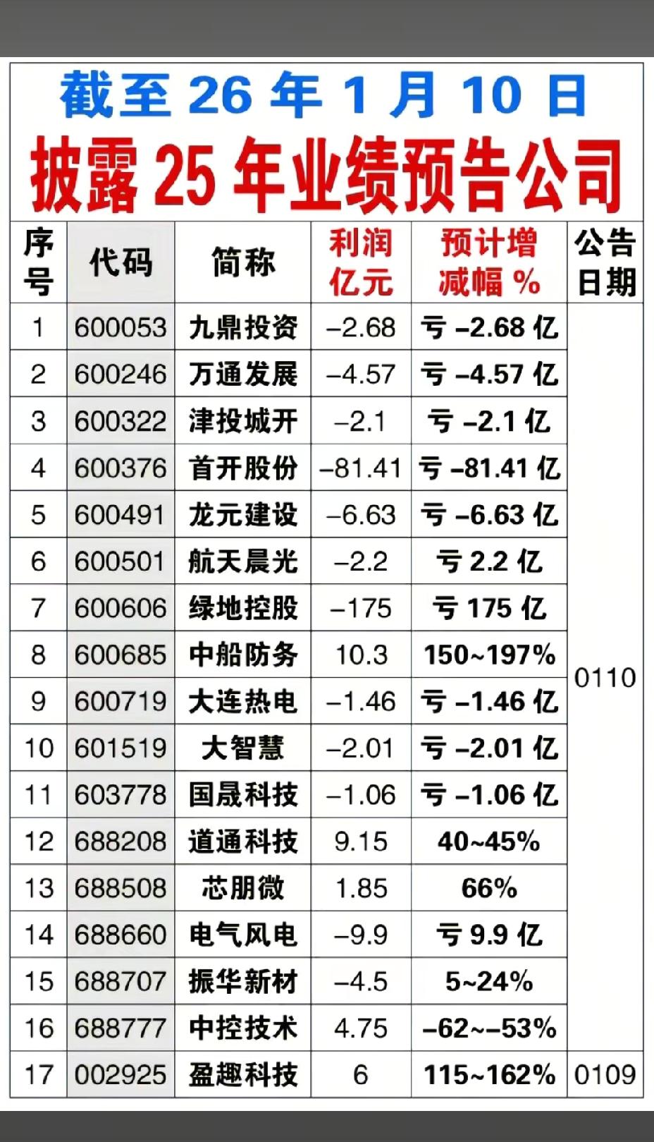 1月10日,下周A股这些股票有望大涨!!! 盈趣科技25年业绩预告利润6亿元,同比增长115-162%,后市值得高看一眼;回盛生物利润预告2.53亿,同比增1266-1445%,后市值得期待;中科蓝讯25年预告利润14.15同比增长367-377%!!!
