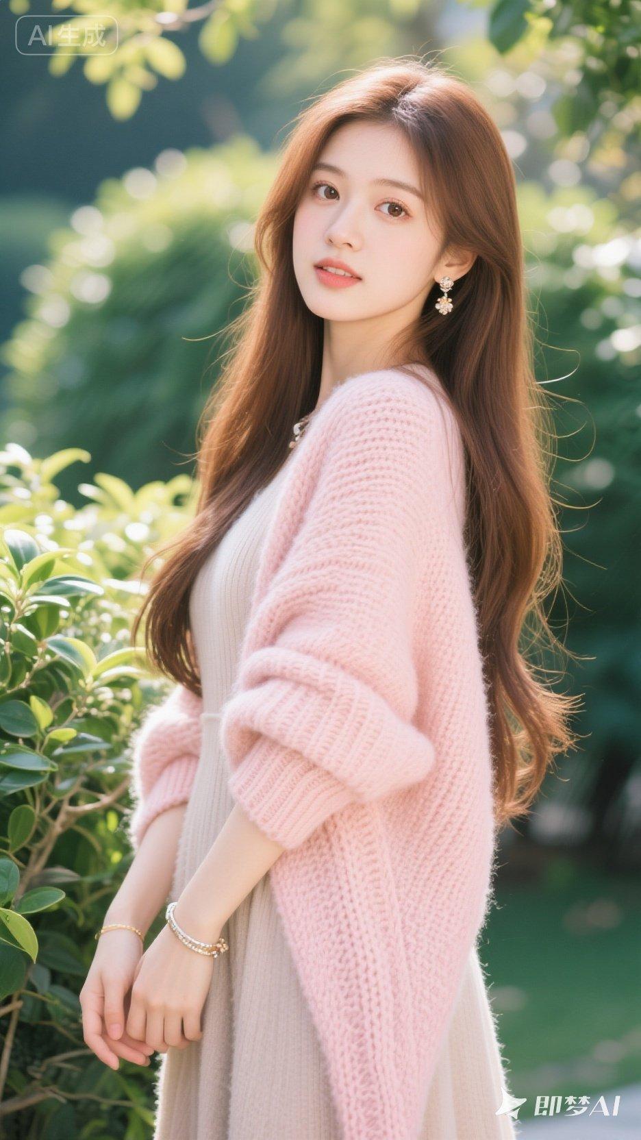 温柔粉色毛衣,清新自然,少女心满满!🌸💕