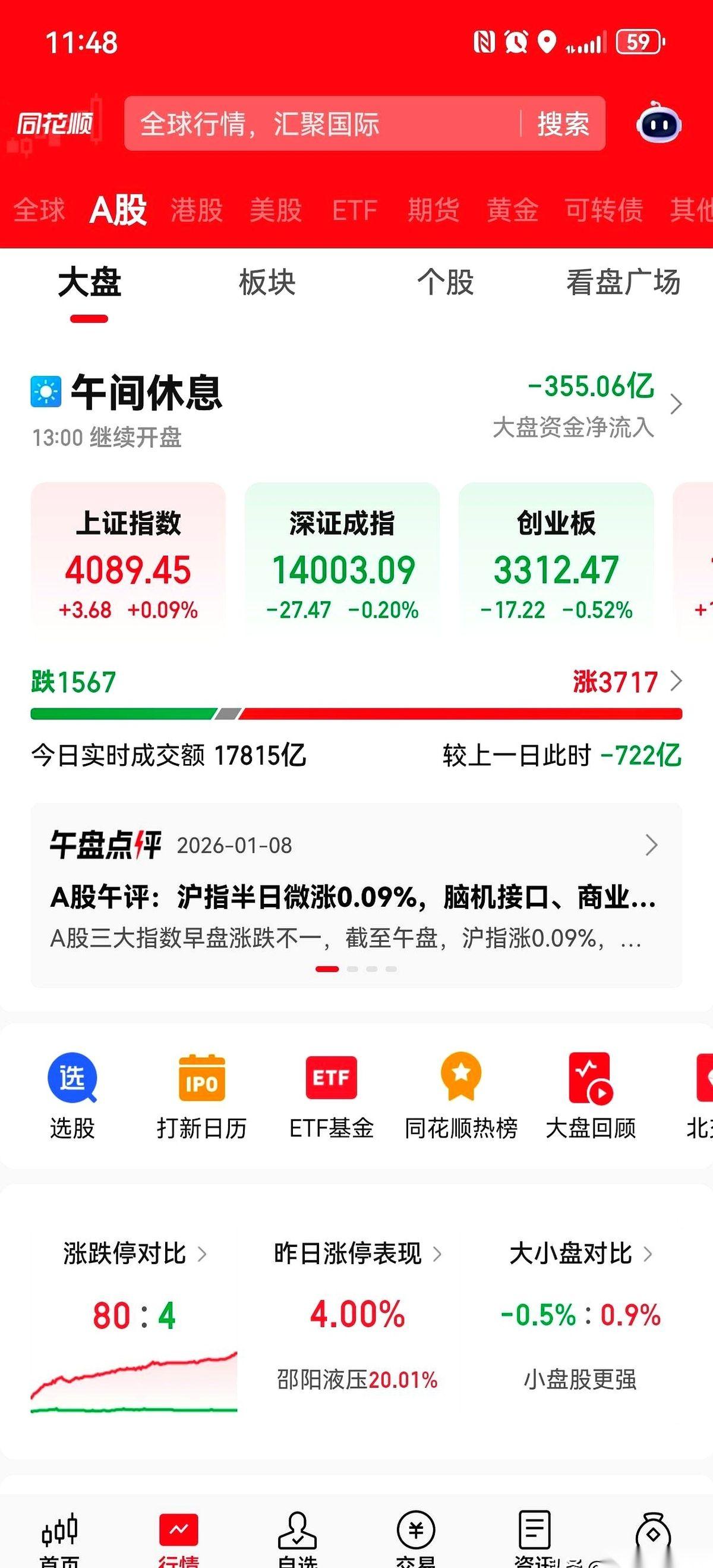 95万,就这么全砸在一只股票上。 都说我是18年老股民,只有我自己知道,开盘前那几分钟,盯着屏幕的手还是会攥成拳头。 大盘指数慢吞吞地爬,红了0.09%,几乎没动。整个屏幕,死气沉沉。 我的眼睛死死盯着属于我的那一行。绿色。红色。又变绿。心跳跟着那根分时线,一上一下,嗓子眼发紧。 就在那一秒,那根线猛地一抬头,数字开始狂跳。 我下意识往前凑了凑,眼睛几乎要贴在屏幕上,看着那串红色的数字从几百,跳到一千,最后稳稳地停在“+4689”上面。 整个人靠回椅子上,长长吐出一口气,后背竟然有点湿。 外面说有3700多只股票都在涨,但那一刻,它们都只是背景里的杂音。 今天中午的盒饭,总算能踏踏实实加个鸡腿了。 兄弟们,你们的屏幕今天是什么颜色?